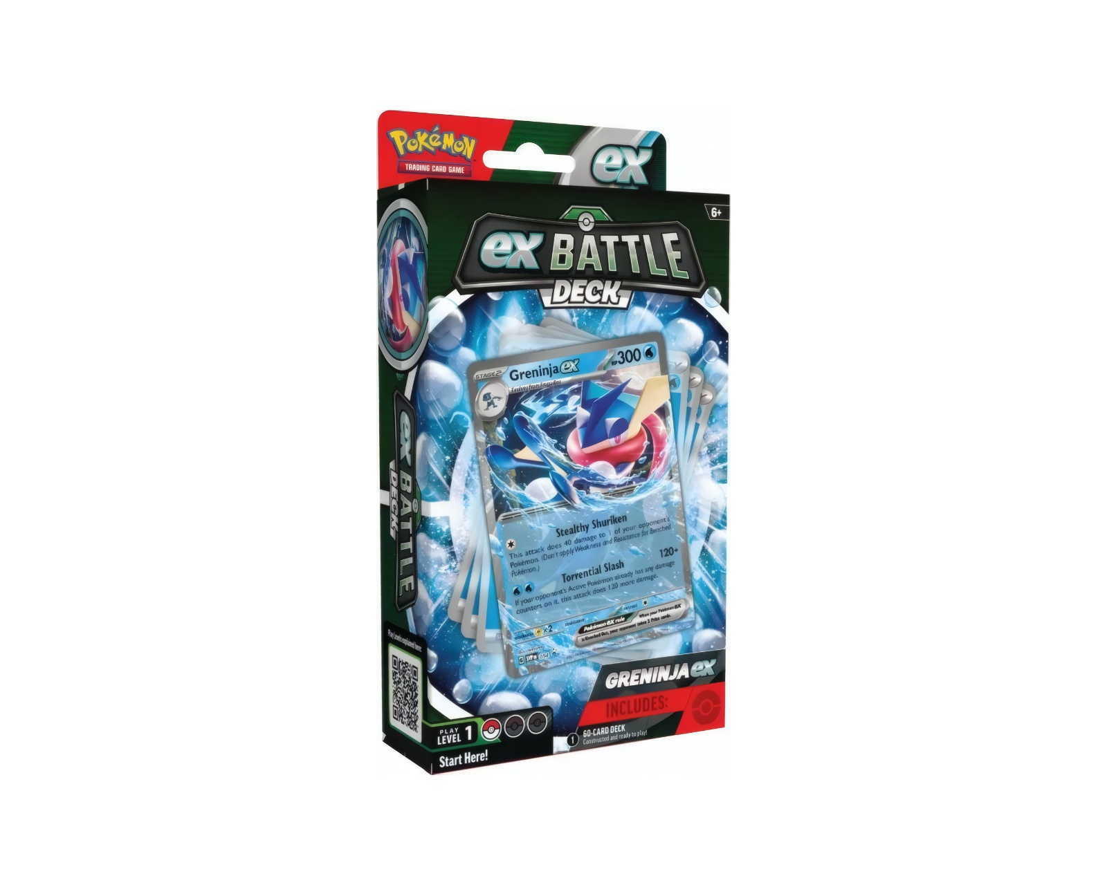 Battle Deck Greninja/Kangaskhan er et samlekortspil fra Pokémon, som består af to temadecks, Greninja ex og Kangaskhan ex. Disse dæk blev udgivet den 6. oktober 2023 og er designet til begyndere inden for Pokémon Trading Card Game. Hvert dæk indeholder 60 kort med et fast udvalg, inklusive de udvalgte Pokémon som Pokémon ex. Dækets indhold er omhyggeligt formuleret for at give en afbalanceret spiloplevelse.Battle Dækets bygg kvalitet er høj, og hvert dæk kommer med en række komponenter såsom en deck box, skademarkører, en enspiller spillematte samt en regelbog og en hurtigguide. Derudover findes der tre referencekort og et TCGL kodekort samt en stor mønt. Expansionsformatet “ex” i disse dæk vil appellere til gamere, der ønsker at udforske spillets strategiske dimensioner. Dækets design og indhold sigter mod at lette for begyndere at forstå grundpillerne i spillet.