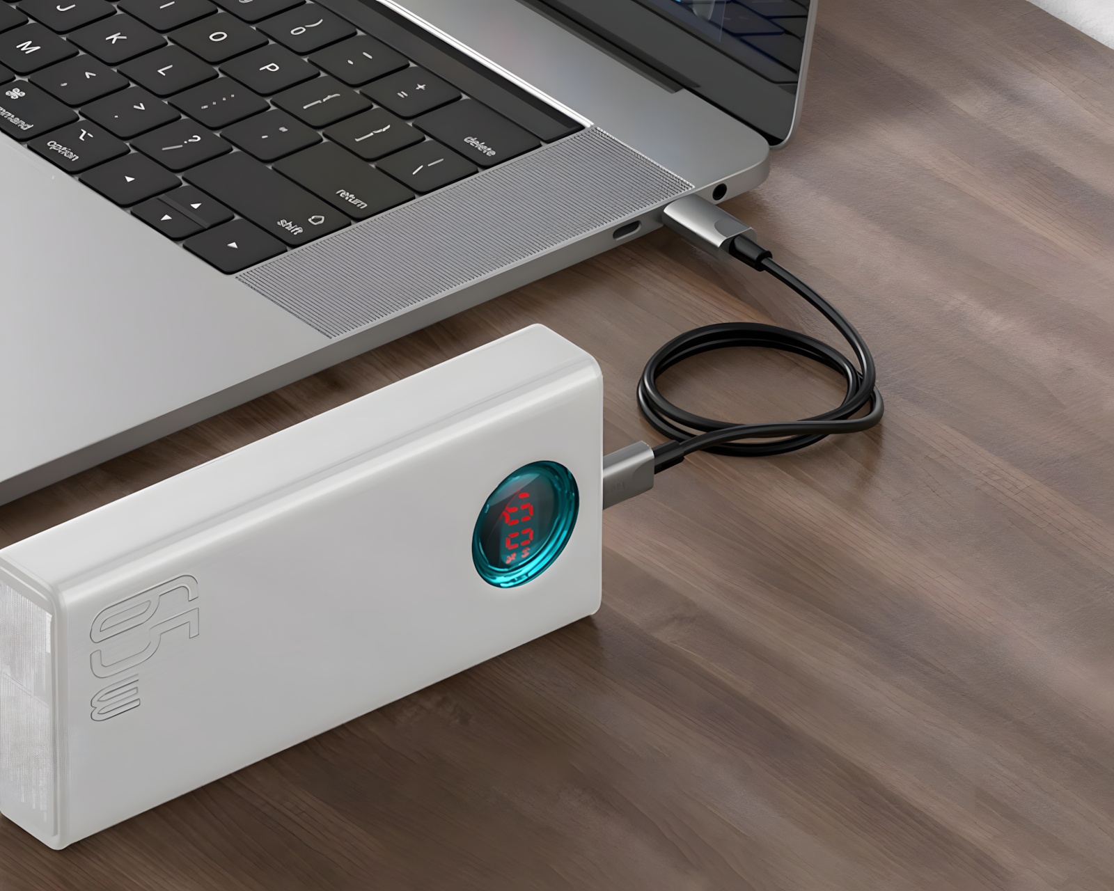 Amblight 30000mAh er en kraftfuld powerbank fra Baseus, som kombinerer høj kapacitet med hurtig opladningsteknologi. Med en imponerende kapacitet på 30000 mAh kan brugeren oplade flere enheder samtidig takket være fem tilgængelige porte. Den understøtter også hurtigopladningsprotokoller som PD, QC og SCP, hvilket gør den ideel til smartphones og bærbare computere.Bygget til at modstå daglig brug har Amblight-powerbanken en holdbar konstruktion, der sikrer tryghed under opladning. LED-skærmen giver realtidsinformation om strømstyrke, spænding og batteriniveau, hvilket gør det nemt for brugeren at holde styr på enhedens status. Derudover justerer den automatisk strømstyrken afhængigt af hvilken enhed der oplades, hvilket beskytter mod overophedning og kortslutning. Ved at inkludere et USB-C til USB-C-kabel letter det desuden genopladning af powerbanken.