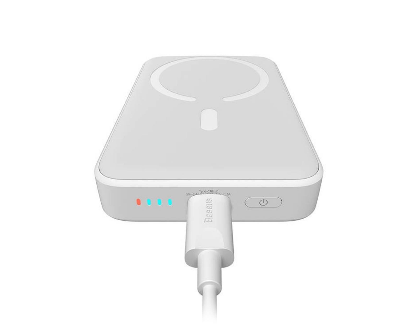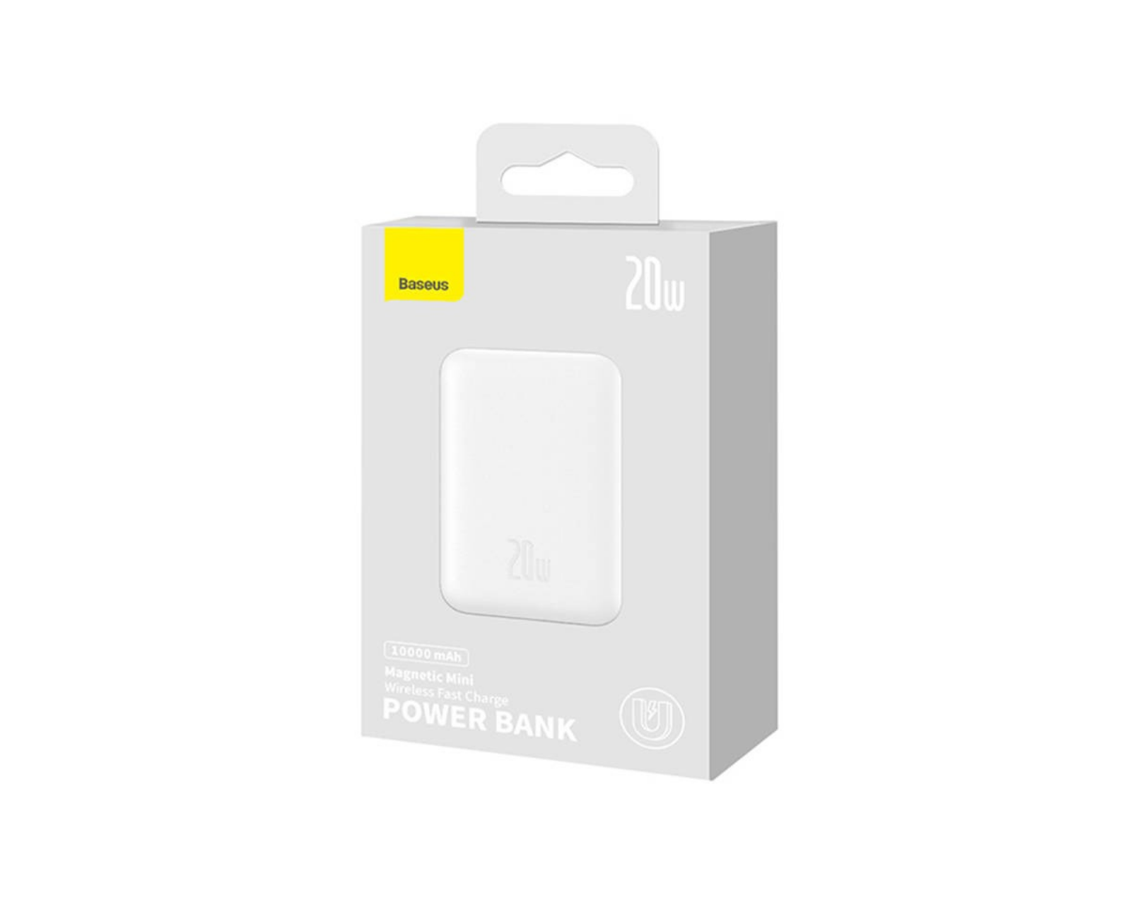 En bærbar strømforsyning fra Baseus, som kombinerer hurtig og sikker opladning. Med en kapacitet på 10.000 mAh og støtte for både kablet og trådløs opladning på op til 20W, er denne powerbank en praktisk løsning til at holde dine enheder opladet. Den har også en indbygget skærm til nemt at kunne kontrollere batteristatus.Produktet har et let og kompakt format, hvilket gør det nemt at tage med. Den magnetiske design sikrer, at din smartphone holdes på plads under trådløs opladning uden at blokere kameraet. De anvendte materialer bidrager til en behagelig følelse og minimerer risikoen for, at enheden glider ud af hånden. Med støtte for hurtigopladning oplades en iPhone til 50% på kun 30 minutter, og den trådløse funktion tilbyder op til 15W opladningseffekt.