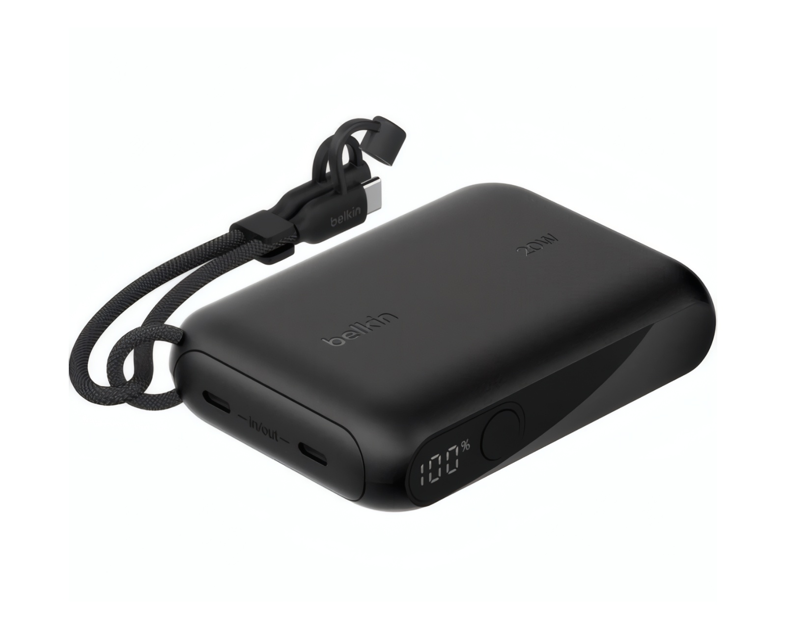 10k PD20W Powerbank med skærm er en portabel strømforsyning fra Belkin designet til at give pålidelig opladning til flere enheder. Med en kapacitet på 10.000 mAh kan den oplade de fleste telefoner mindst to gange. Den har muligheden for at oplade op til to enheder samtidig via sine USB-porte og har en effekt på op til 20 W for hurtig opladning. Produktet er beregnet til brugere, der har brug for pålidelig opladning på farten.Enheden er udstyret med lithium-ion batteriteknologi og er genopladelig, hvilket gør den både bæredygtig og effektiv. Den medfølgende USB-C-kabel muliggør nem opladning af powerbanken, og dens LED-display viser tydeligt aktuel batteriniveau. Vigtige funktioner inkluderer pass-through opladning, som tillader brugeren at oplade både powerbanken og tilsluttede enheder samtidig. Den er også godkendt af TSA til kabinbagage og fremstillet af 72 % genanvendt plastik, hvilket bidrager til en mere bæredygtig produkt.