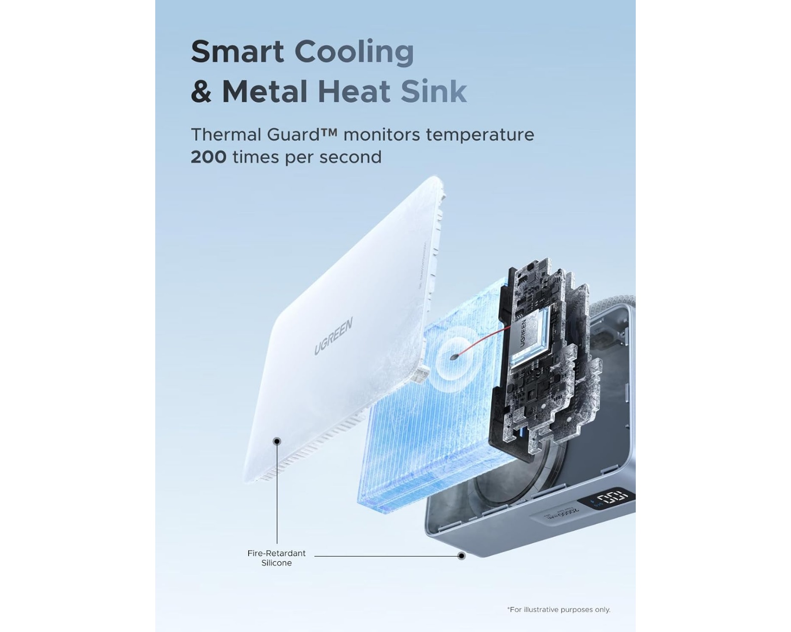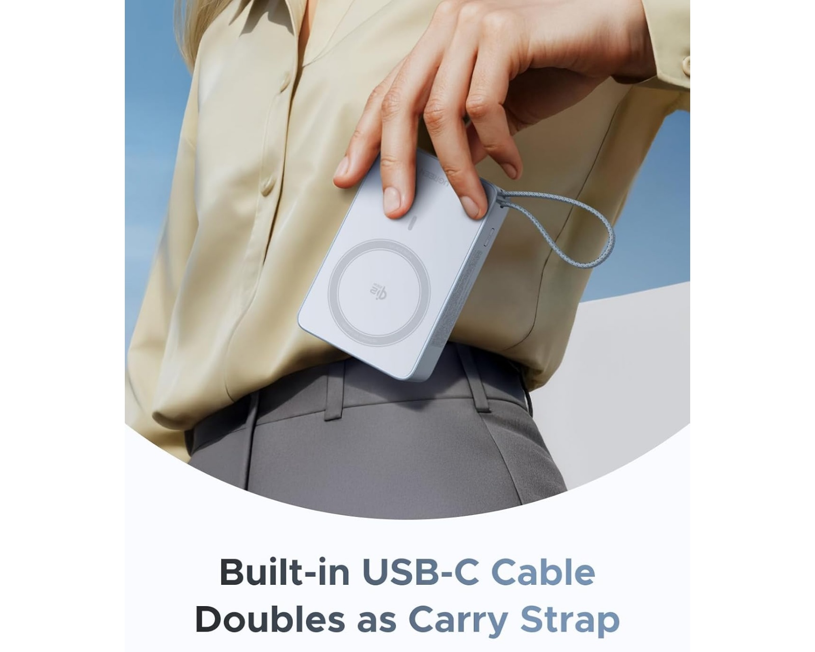 MagFlow Qi2.2 25W er en multifunktionel powerbank fra UGREEN med en kapacitet på 20000mAh. Den tilbyder trådløs opladning med en maksimal effekt på 25W, hvilket gør den kompatibel med MagSafe og Qi2-standarden. Et indbygget USB-C-kabel muliggør både opladning og strømforsyning, med en maksimal udgang på 100W. Powerbanken er udstyret med N52-magneter, som giver en stærk og præcis magnetisk fastgørelse, hvilket sikrer, at enheden sidder fast under opladning.Den har flere opladningsmuligheder, inklusive både trådløs og ledningsopladning, og er designet til at være alsidig, hvilket gør den egnet til både smartphone-brugere og computerbrugere. Med støtte for hurtigopladning via USB-C-portene kan den oplade enheder som MacBook, iPad og iPhone effektivt. Sikkerhedsfunktioner som beskyttelse mod overstrøm, overspænding og kortslutning gør den til et sikkert valg til rejser.