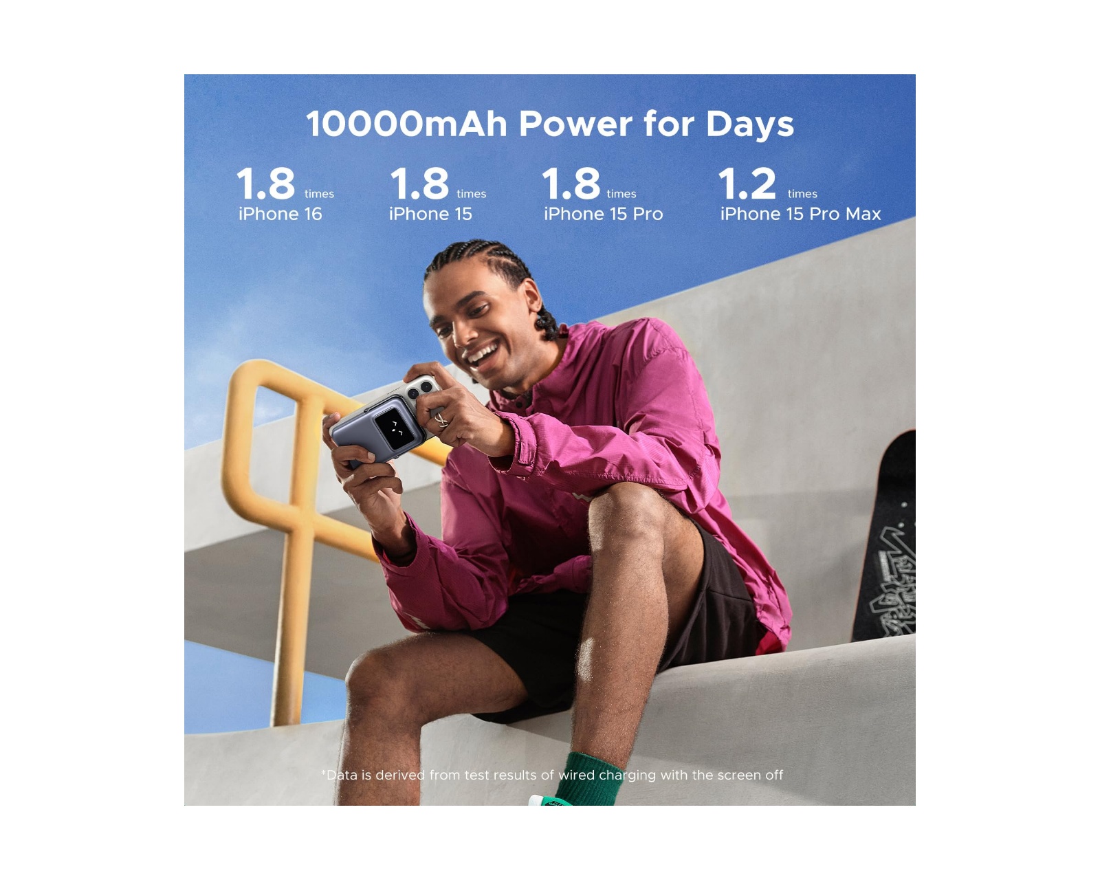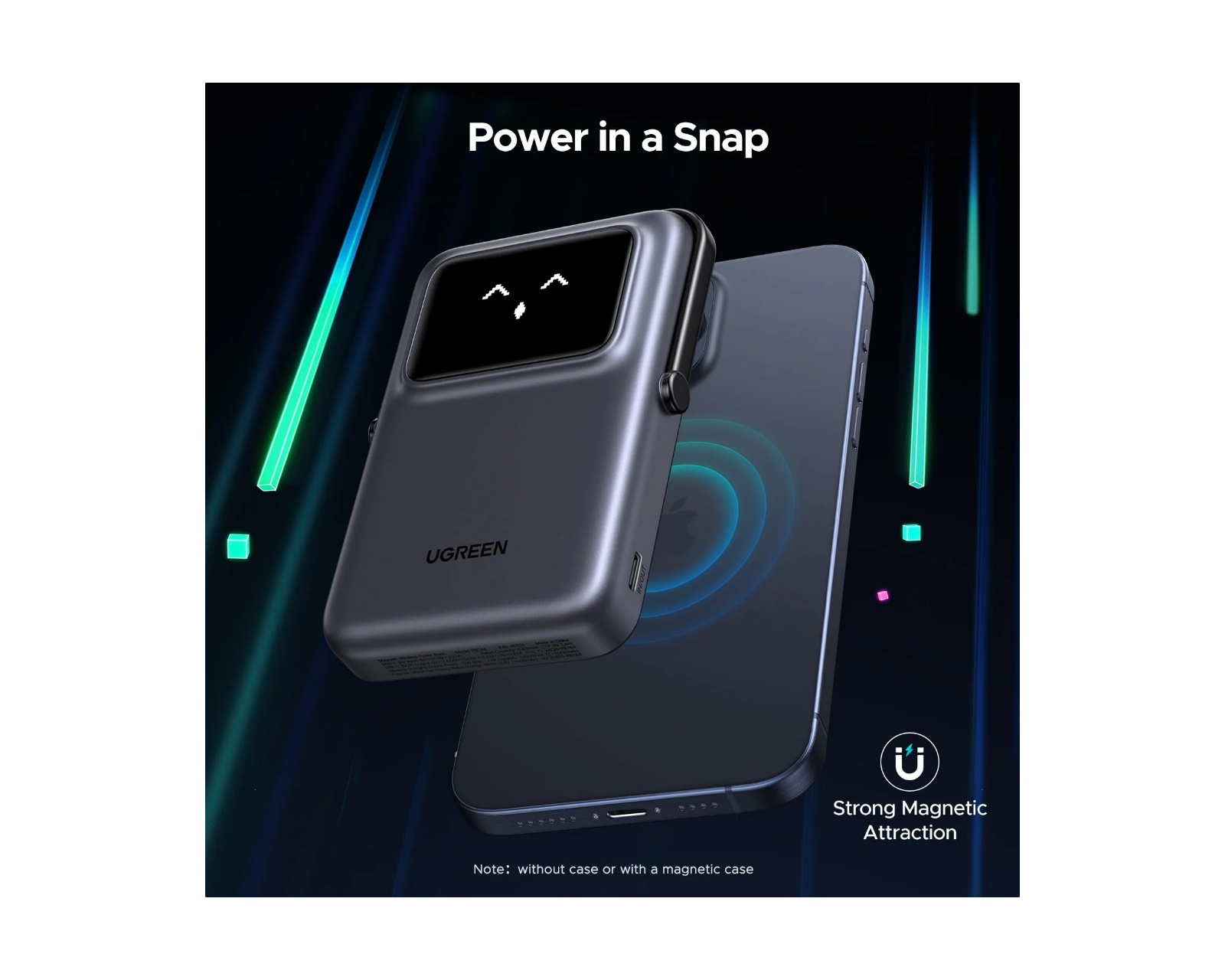 Uno 10000mAh Magnetic Wireless Powerbank er en powerbank fra UGREEN, der tilbyder 20W effektiv opladning og trådløs opladning med magnetisk funktion. Med en batterikapacitet på 10000mAh (opdelt i to celler på 5000mAh) yder den en nominel kapacitet på 6000mAh ved 5V og 2,4A, hvilket gør den velegnet til effektiv opladning af forskellige enheder. Powerbanken er også udstyret med et smart display, der viser status via emojis. Den er designet til både hverdag og mere krævende brug.Powerbanken har en USB-C input/output, der understøtter 5V/3A, 9V/2.22A og 12V/1.5A, og en maksimal effekt på 20W. Derudover har den trådløs opladning med en effekt på 7,5W. Med flere beskyttelsesfunktioner mod overopladning, overafladning, overstrøm, overbelastning, overspænding, overtemperatur, kortslutning og elektromagnetiske felter er enheden både sikker og pålidelig. Opladningstiden er cirka 2,5 timer med en PD20W-oplader, og dens kompakte dimensioner (L106xB70xH22 mm) gør den nem at bære.