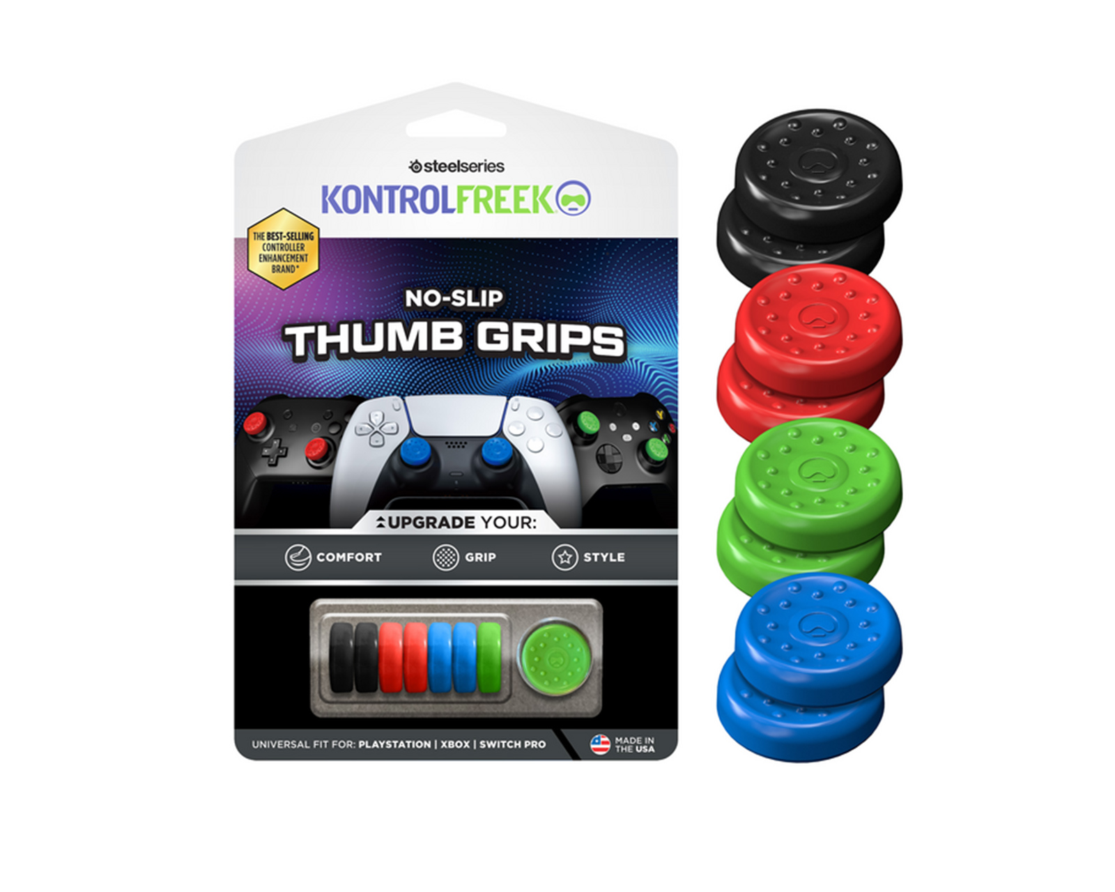 Opgrader grebene på dine joysticks for maksimal komfort og kontrol. Med disse skridsikre tommelfingergreb vil dit greb forbedres enormt. Grebene holdes på plads under intense spilsessioner og er også ekstremt holdbare. Farve designet til at være universel, disse vil passe rigtig fint på controlleren.Nyd bedre præcision, ekstra greb og komfort i alle bevægelsesretninger med disse præcisions-thumbsticks fra Kontrolfreek. Tag mere kontrol og hæv dit spilniveau med thumbsticks fra Kontrolfreek, lad ikke noget stoppe dig!