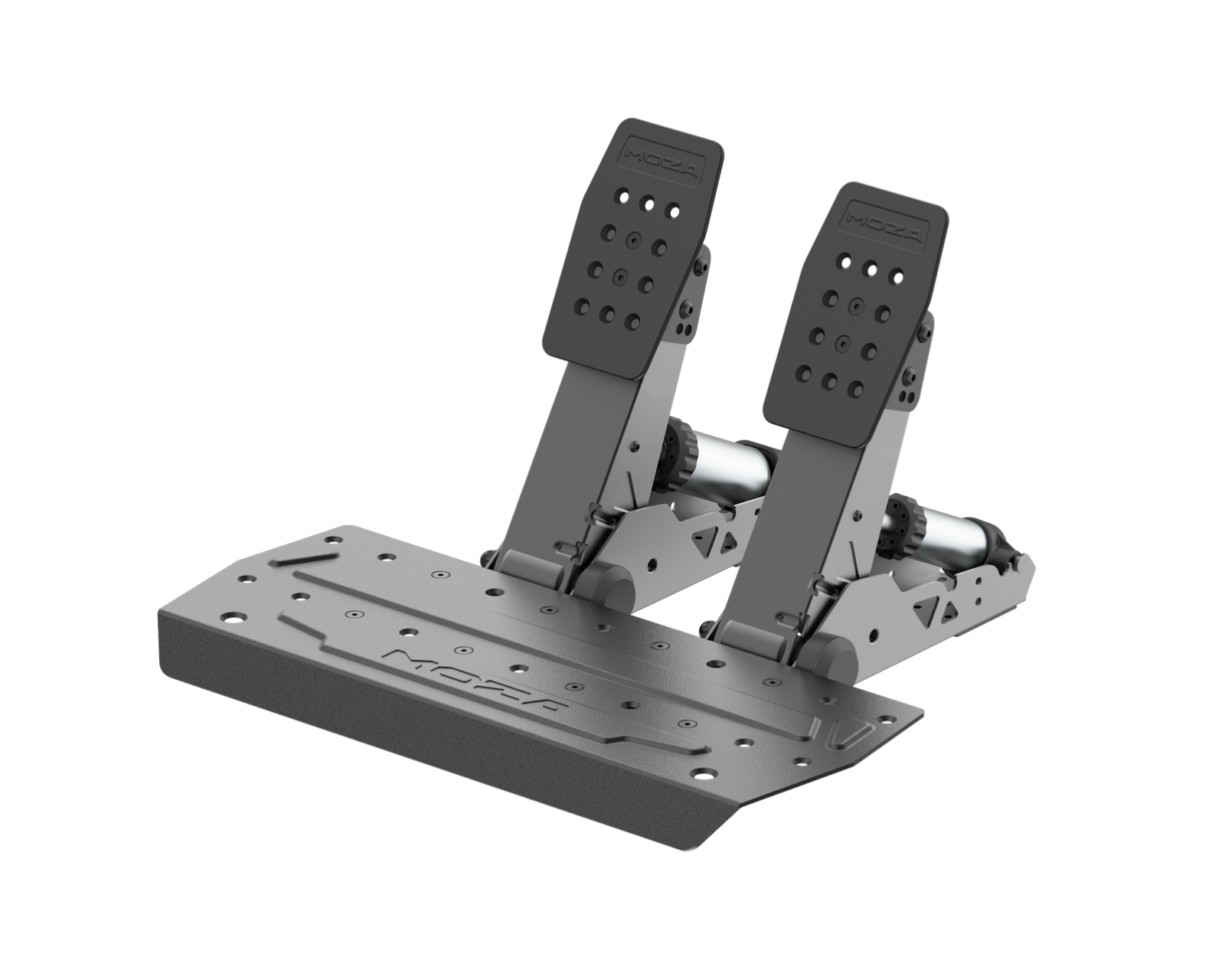 SR-P2 Två Pedalset er et belastningscellessystem fra Moza Racing, der kombinerer høj præcision og justerbarhed for en forbedret racingoplevelse. Dette pedalset er designet til både racingentusiaster og gamere, der søger en mere realistisk følelse i deres kontroller. Med støtte for en belastningscelle på op til 100 kg og en hybrid bremssensor tilbyder produktet hurtig respons og præcis kontrol over bremserne.Pedalerne er fremstillet af høj kvalitets aluminium og stål, hvilket sikrer holdbarhed og stabilitet selv under intensive spilsessioner. Den 15-bits vinkelgiver bidrager til præcis aflæsning af pedalens position, mens den justerbare pedalvinkel og højden gør, at brugerne kan tilpasse opsætningen ud fra deres individuelle behov. Desuden muliggør et omfattende justeringssystem for både gas og kobling en glidende og responsiv brugeroplevelse.