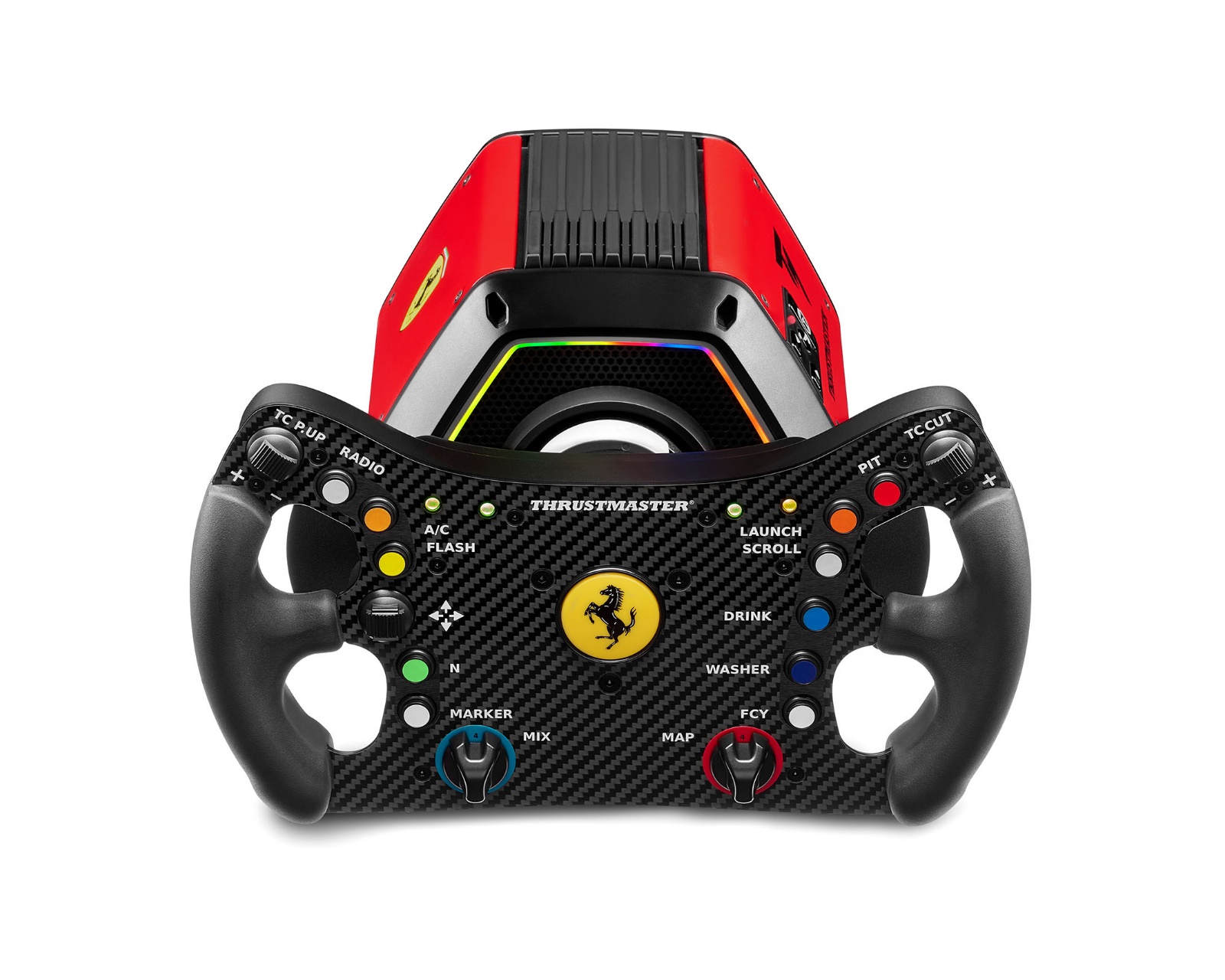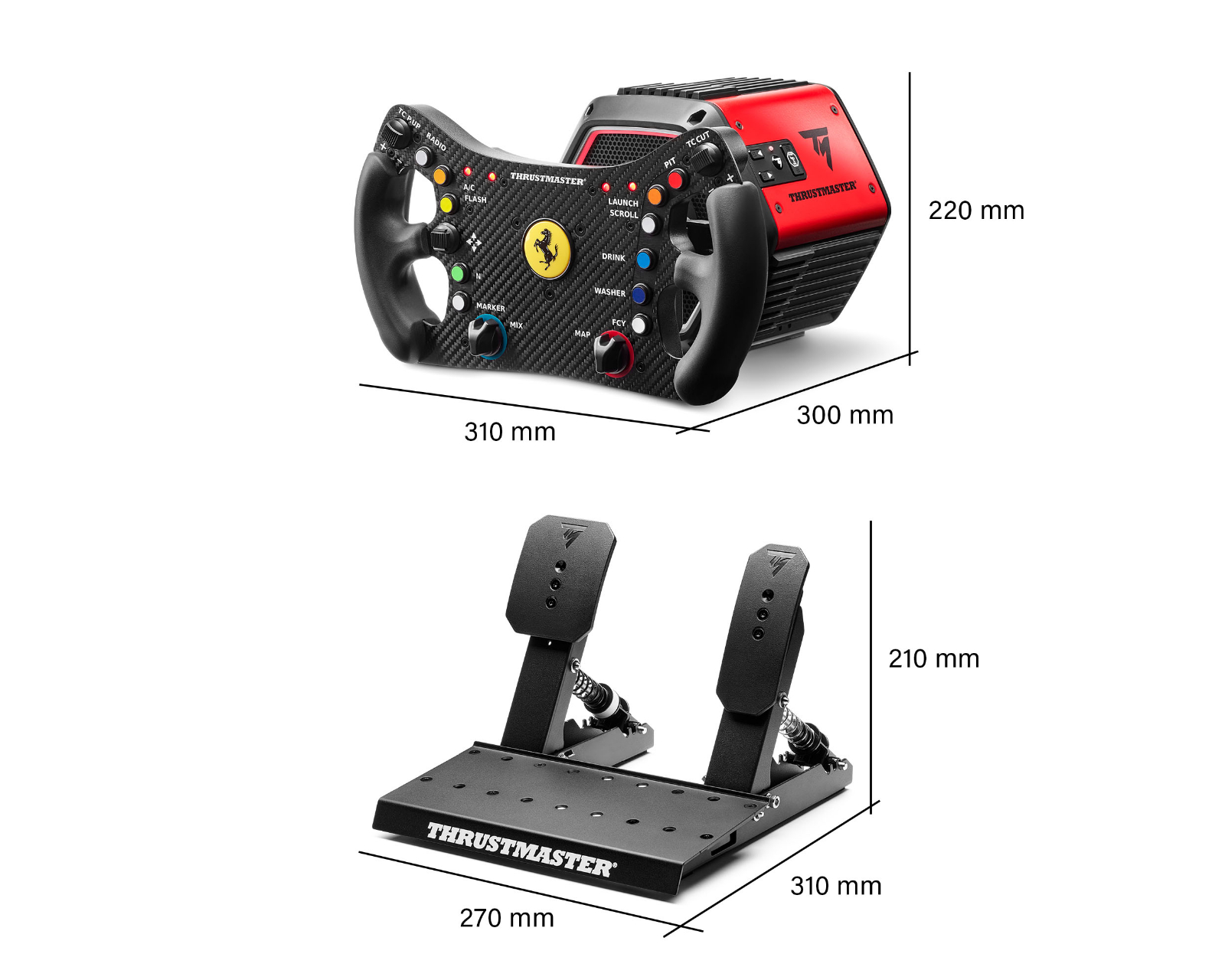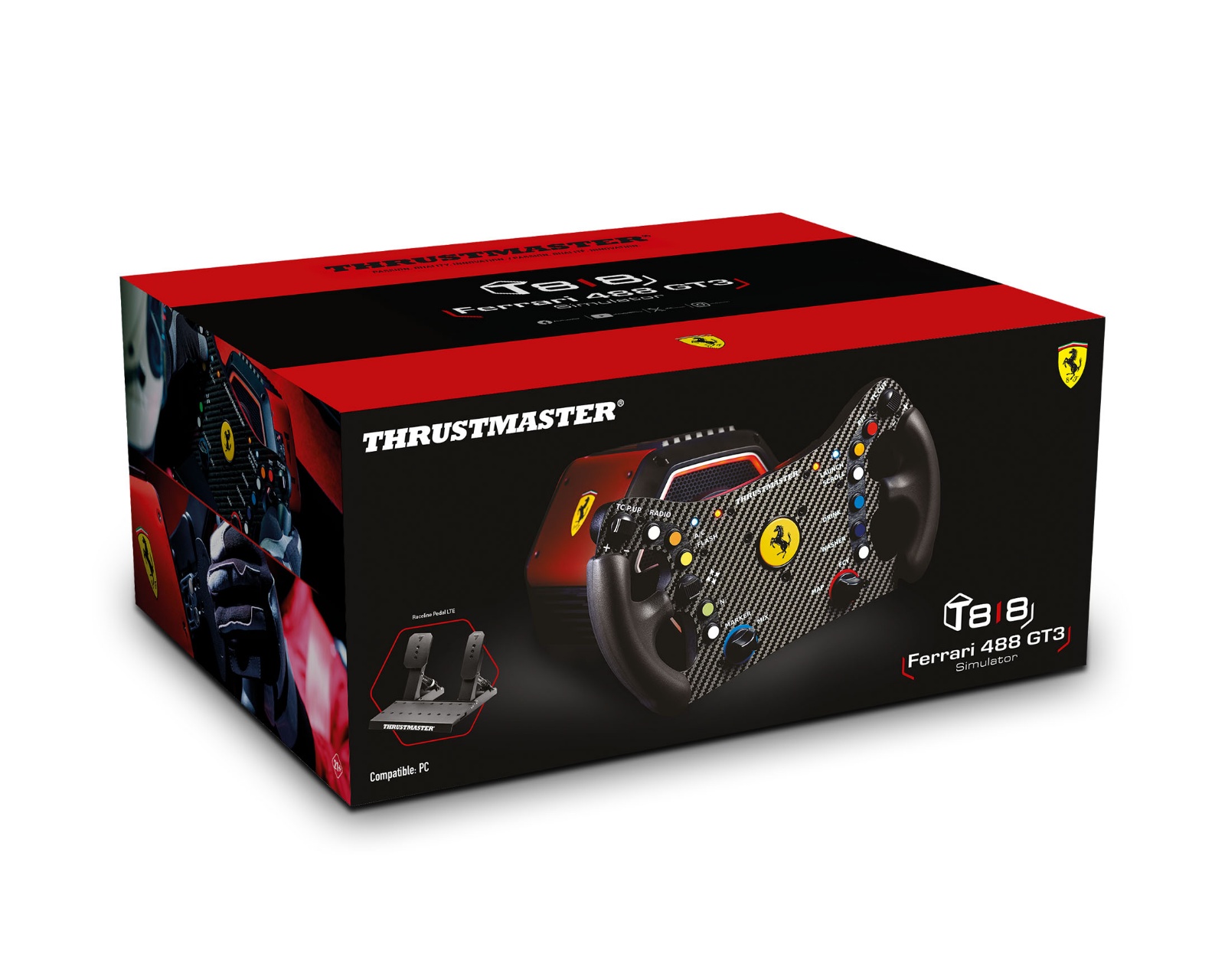 T818 Ferrari 488 GT3 Simulator er et racingpakke, der kombinerer avanceret teknologi med officiel licensiering fra Ferrari. Den består af T818 Direct Drive-basen, Ferrari 488 GT3 rattet og Raceline Pedals LTE pedalsæt, hvilket gør den ideel til seriøse gamere, der søger en autentisk racingoplevelse. T818-basen leverer et konstant momenttræk på 10 N·m med exceptionel respons, hvilket giver øjeblikkelig feedback og følelse. Den robuste konstruktion af den nye T818-basis indebærer en forstærket kobling og optimeret motor for øget pålidelighed.Sammen med My Thrustmaster Panel-softwaren kan brugerne tilpasse Force Feedback og gemme deres indstillinger for en skræddersyet spilleoplevelse. Ferrari 488 GT3 rattet, der medfølger, er en livsstørrelsesreplik af høj kvalitet, udstyret med 11 knapper, 4 encodere, en D-pad og Mag-Shift paddlegear for hurtig og præcis gearskifte. Raceline Pedals LTE pedalsæt tilbyder også lufttryk og justerbar konstruktion, hvilket gør det muligt for brugerne at finjustere deres indstillinger for at passe til deres kørestil.