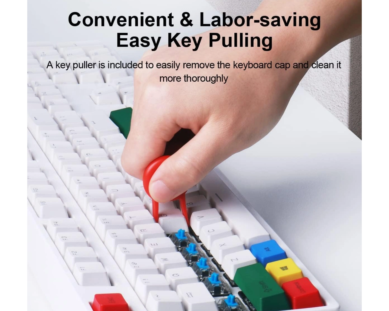 Rengøringsbørsten CB01 er et computertilbehør fra Hagibis, der effektivt adresserer rengøringsbehovet for tastaturer og lignende enheder. Med et dual head hidden design tilbyder den en alsidig rengøringsløsning, mens de bløde og elastiske børstehår er konstrueret til at optimere i styrke og holdbarhed. Det ergonomiske håndtag og nøgleplukkeren giver en glat oplevelse for gamere og teknikentusiaster, der ønsker at holde deres udstyr rent.Børsten er fremstillet med materialer af høj kvalitet, hvilket sikrer, at hver børste spids er finjusteret til at klare beskidte overflader uden at skade dem. Dens tre rækker af børster er designet til at være lige og tætte, hvilket tillader, at den går dybt ned i sprækkerne af tastaturer og andre elektroniske enheder. Enheden er også designet til at modstå deformation og har en længere levetid, hvilket gør den velegnet til kontinuerlig brug.