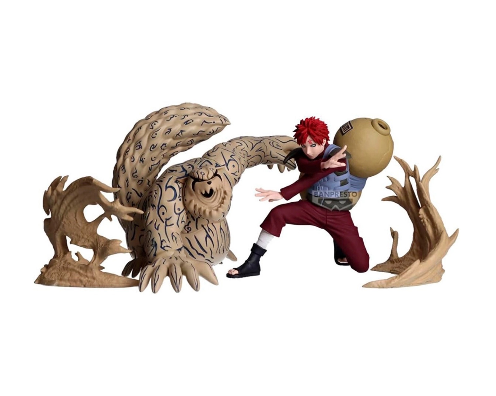 En samlerfigur fra Bandai, inspireret af den velkendte anime-serie Naruto: Shippuden. Figuren forestiller Kazekage Gaara, som er afbildet i en kampstilling med sin signatur sandjutsu klar til brug. Med en højde på 17,01 cm er denne detaljerede figur lavet af PVC og ABS-plast, hvilket giver en robust konstruktion og et imponerende udseende i enhver samling.Den omhyggeligt designede figur fanger Gaara i en dynamisk pose, hvilket giver liv til scenen fra anime. Vibration Stars Plus-serien er kendt for sine detaljer, og denne figur er ingen undtagelse. Den er ikke ledet, hvilket gør, at designet er kontinuerligt, og fokus ligger på at gengive karakterens styrke og stil. Måtten på 20 x 10 x 15 cm og vægten på 0,19 kg gør den let at placere blandt andre samlerobjekter, uden at tage for meget plads. Den farverige design tiltrækker både samlere og fans af serien.