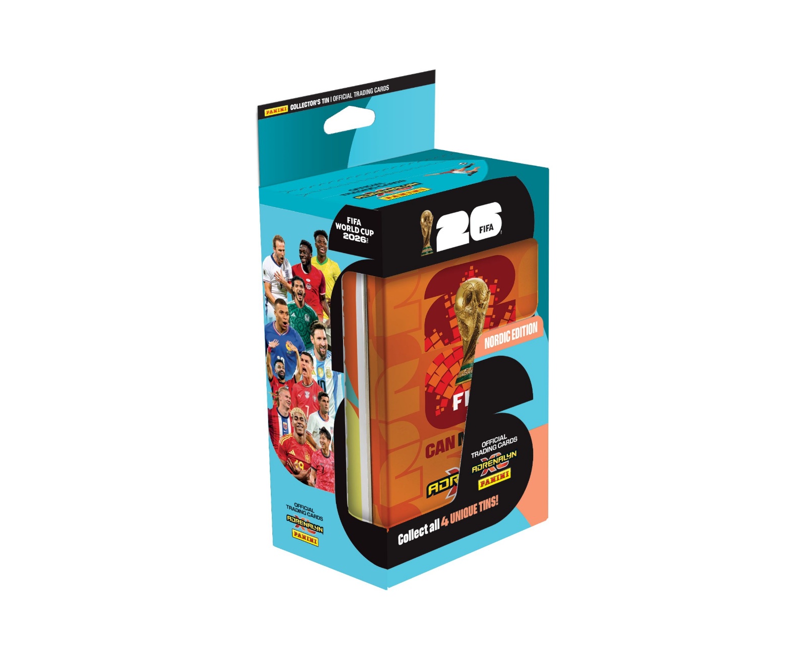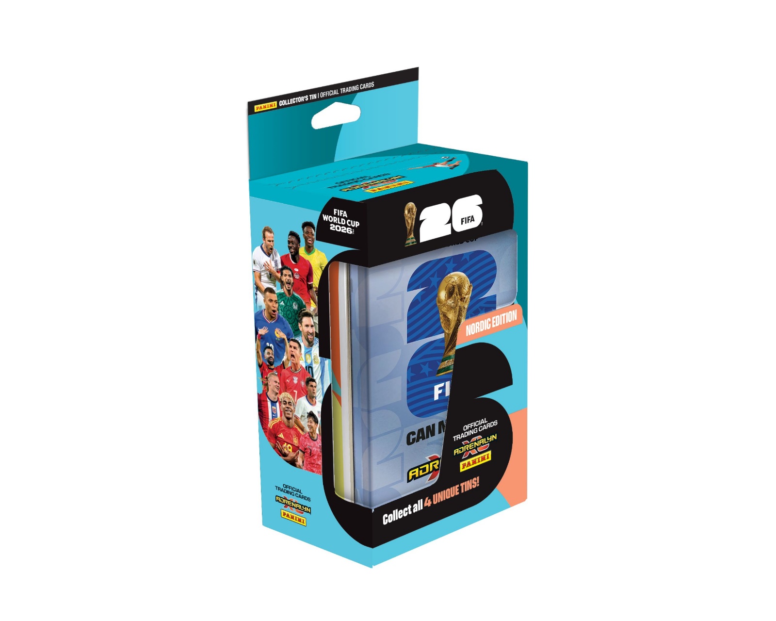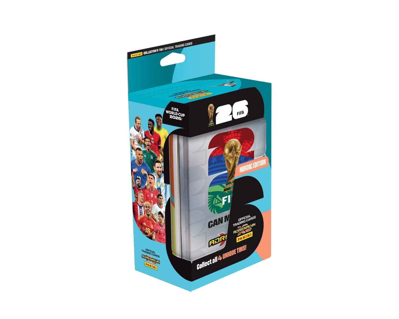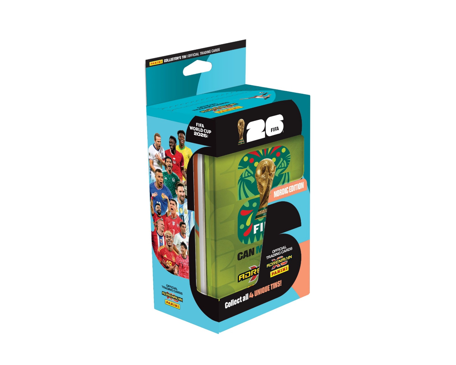 World Cup 2026 Mega Tin - Nordic Edition er en samlerboks fra Panini, der er designet til at give dig en stilfuld og praktisk opbevaring til dine fodboldkort. Denne Mega Tin indeholder 8 boosters, 3 Limited Edition-kort, 1 Golden Baller og 1 Online Coin-kort, hvilket gør den til et uundgåeligt supplement for alle entusiastiske samlere. Med sit unikke design og variationen af kort tilbyder denne tin en spændende måde at udvide din samling på.Mega Tin er fremstillet af bæredygtigt materiale, som beskytter dine kort mod slid og skader. Den tilbyder en sikker opbevaring, der er både funktionel og visuelt tiltalende. De medfølgende boosters indeholder kort, der er omhyggeligt udvalgt for at give dig mulighed for at komplettere din samling, mens Limited Edition-kortene og Golden Baller giver ekstra værdi til tinnet. Online Coin-kortet tilbyder desuden fordele i spil og fællesskaber, hvilket gør dette produkt endnu mere attraktivt for gamere og samlere.