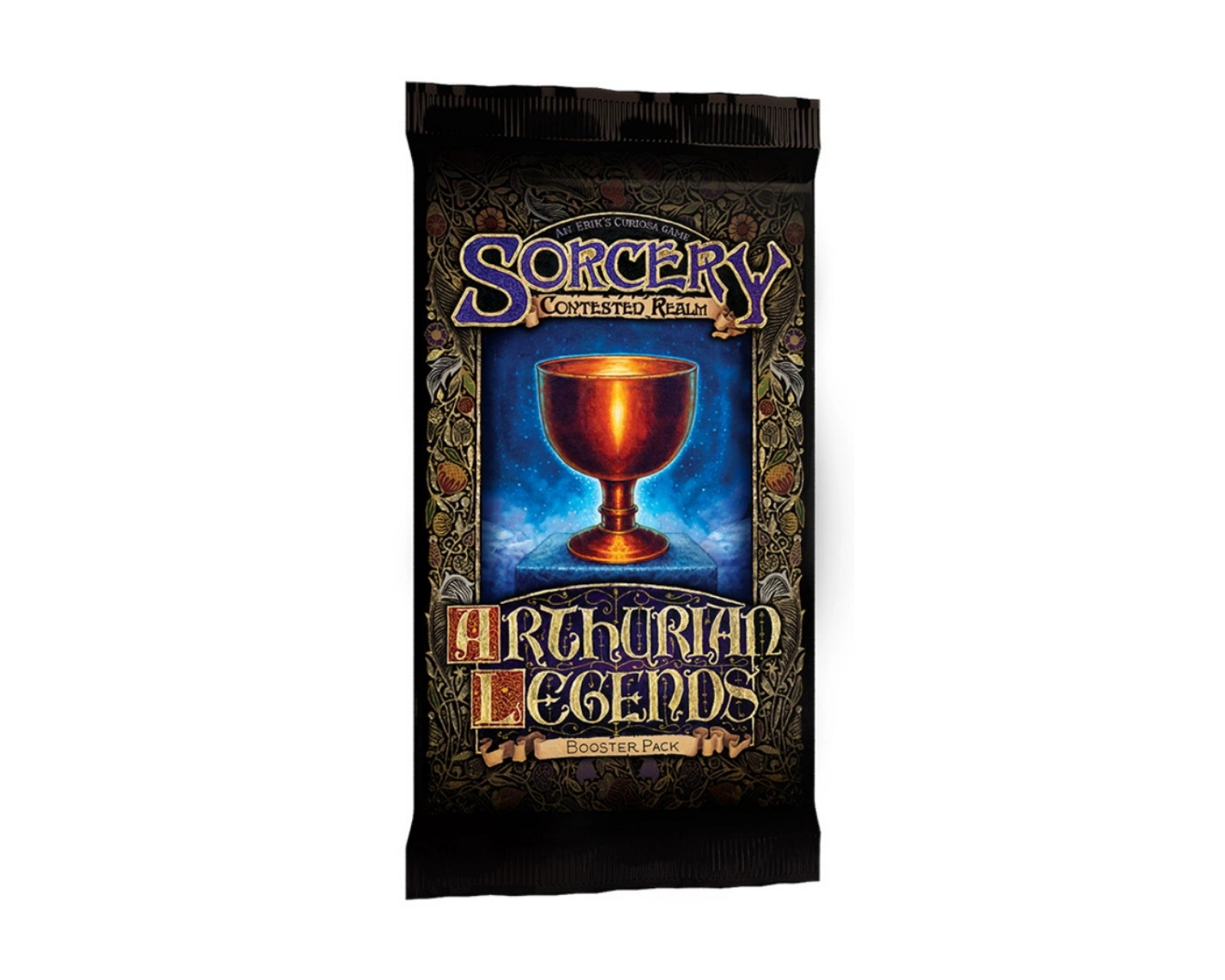 Arthurian Legends Booster er en udvidelse til Sorcery: Contested Realm og består af et booster pakke med 15 kort. Denne expansionssæt tilføjer over 220 nye kort, hvilket giver spillere mulighed for at skabe unikke og episke fortællinger. Spillet kræver, at spillerne forlader deres trygge slotte for at tage ud på en farefuld rejse i en verden præget af strategisk tænkning og kreativ leg. Hvert kort i denne booster pakke indeholder forskellige elementære besværgelser og kan inkludere kraftfulde undersåtter og sjældne relikvier fra spillenes verden.Spillet foregår på et 5 x 4 rutenet, der repræsenterer "The Realm". Spillere kan udvide deres territorium ved at spille kort fra deres tilpassede Atlas Decks. Dette skaber en dynamisk spilleoplevelse, hvor strategisk planlægning og kortkombinationer kan afgøre udfaldet af striden. Spillere påkalder kraften fra de fire elementer – Jord, Ild, Vand og Vind – ved at spille kort fra deres Spellbook. Ved at forme verden omkring sig og kalde på Minions kan spillere defensivt beskytte deres steder såvel som offensivt angribe deres modstandere.