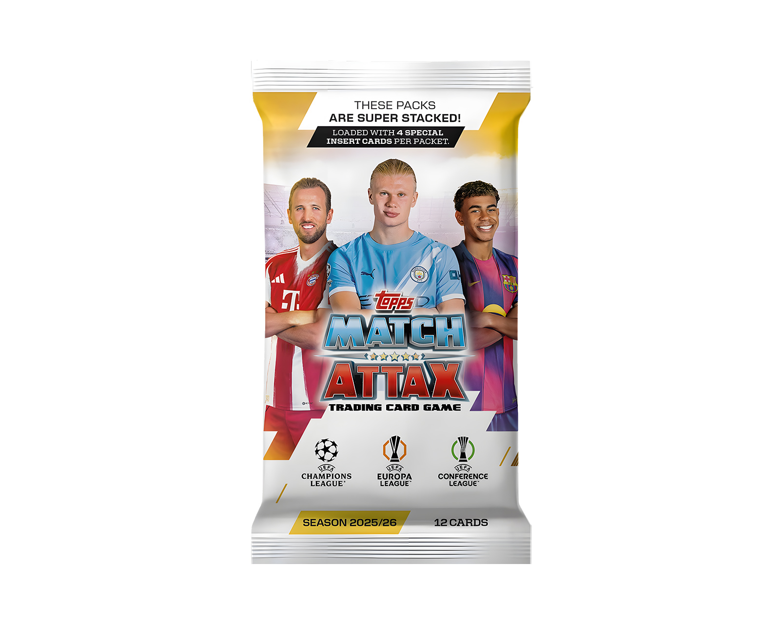 Match Attax Kort UCL 25/26 Booster er et boosterpack med fodboldtema fra Topps og består af 12 kort, hvoraf 4 er specialkort. Disse kort inkluderer repræsentation af de største spillere, klubber og kampe fra UEFA Champions League, Europa League og Conference League. Produktet henvender sig til både samlere og fodboldentusiaster og egner sig godt som gave.Oversigt