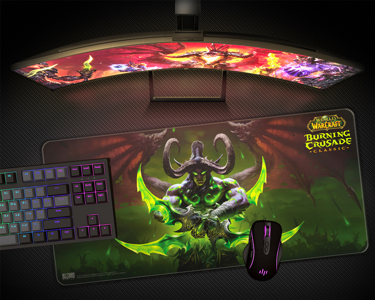 Blizzard - World of Warcraft - Illidan - Gaming Musemåtte er en musemåtte designet til gamere, der værdsætter præcision og stil. Denne gaming musemåtte prydes af en farverig illustration af Illidan Stormrage, en af de mest elskede karakterer fra klassikeren World of Warcraft: Burning Crusade. Med sine generøse mål på 900 x 420 mm og en tykkelse på 4 mm giver den en rummelig overflade til at udføre komplekse bevægelser uden begrænsninger.Musemåtten har en vandtæt overflade, hvilket betyder, at spild og væsker ikke behøver at bekymre dig under intense spilsessioner. Den skridsikre gummibase sikrer, at musemåtten forbliver på plads under hele spillet, hvilket bidrager til konsekvent kontrol og nøjagtighed ved hurtige bevægelser. Med et design, der kombinerer funktionalitet og æstetik, er dette en musemåtte, der kompletterer enhver gamer-setup.