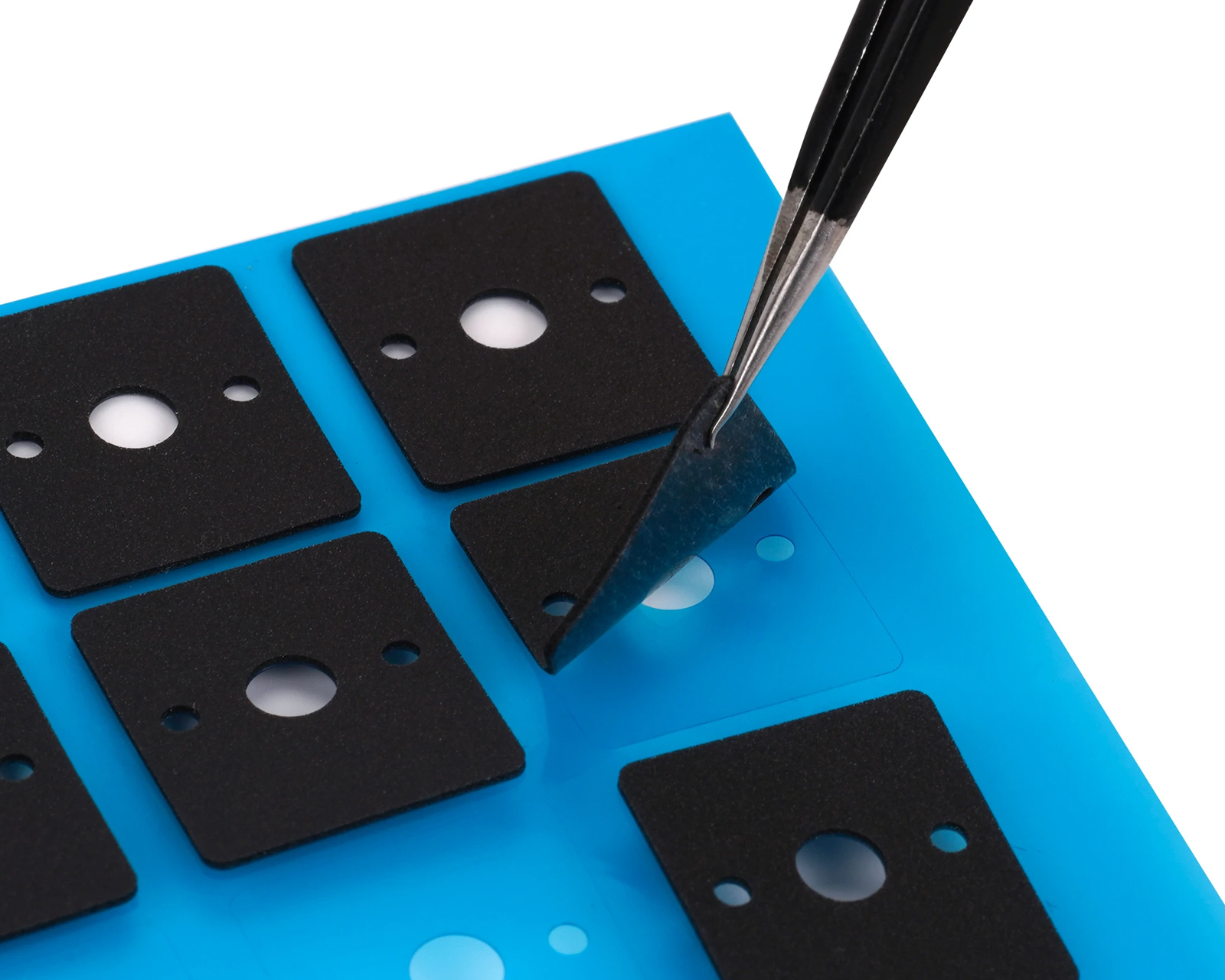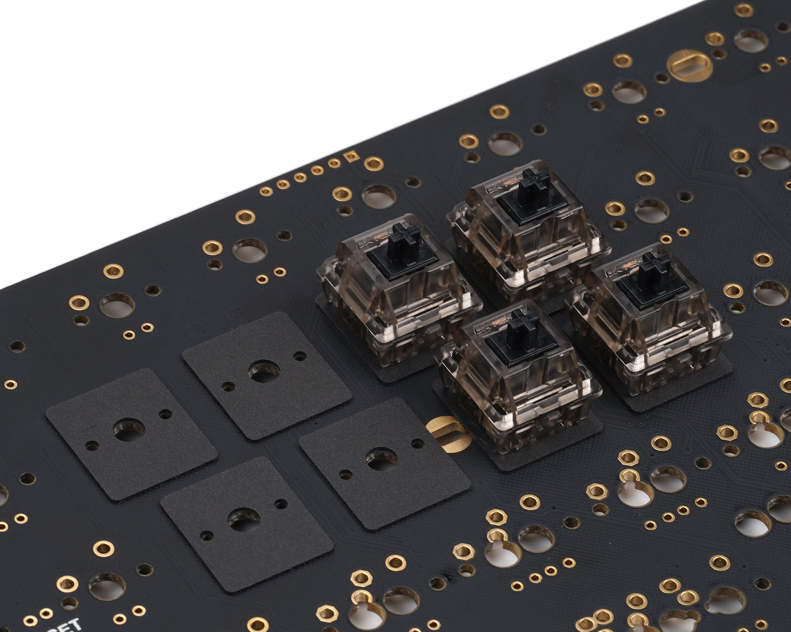 Med Switch Pads fra KBDFans kan limes på printpladen (den har lim på bagsiden) for at buffere strømmen mellem switch og printplade når du trykker på tasten, hvilket giver en mere stille og behagelig skrivefølelse.- Materiale: PORON