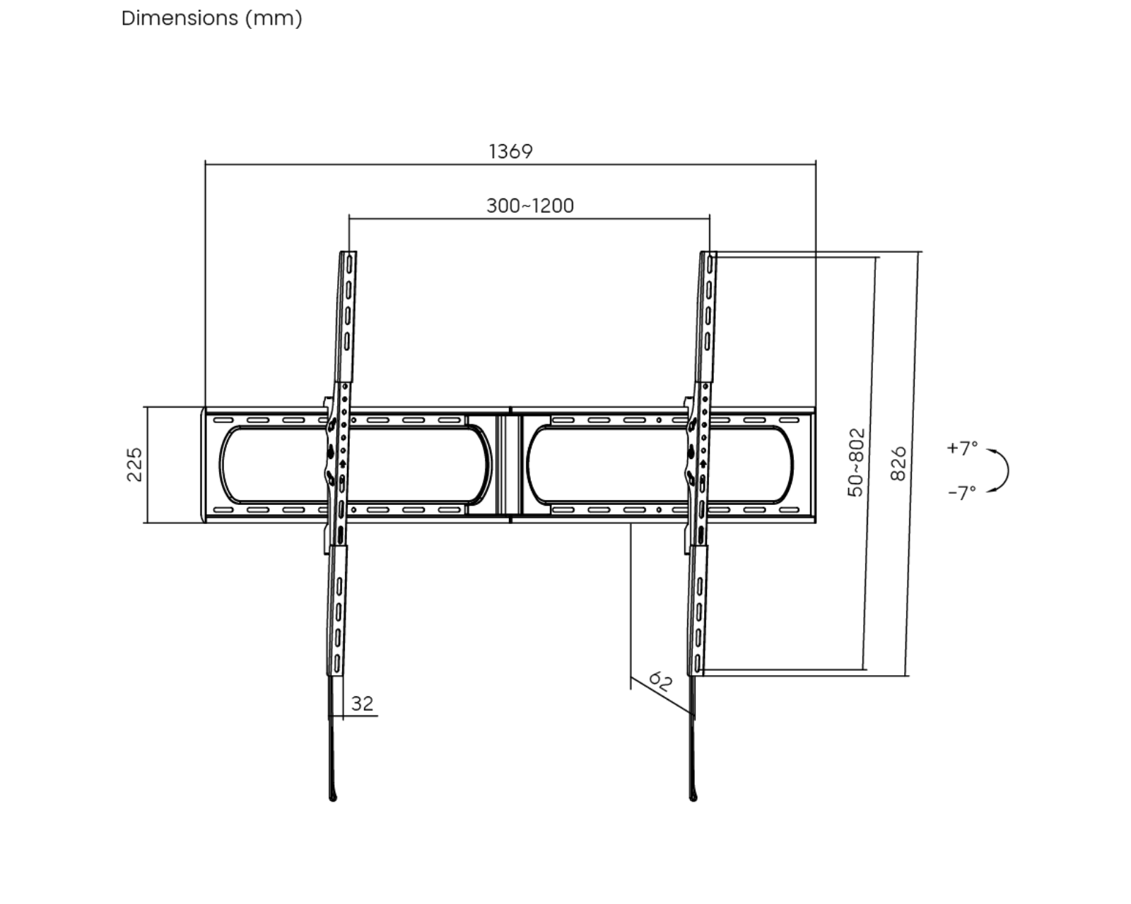 | VESA vægmontering | 1000x600, 1200x600, 1200x800, 300x200, 300x300, 400x200, 400x300, 400x400, 600x400, 800x400, 800x600, 900x600 |