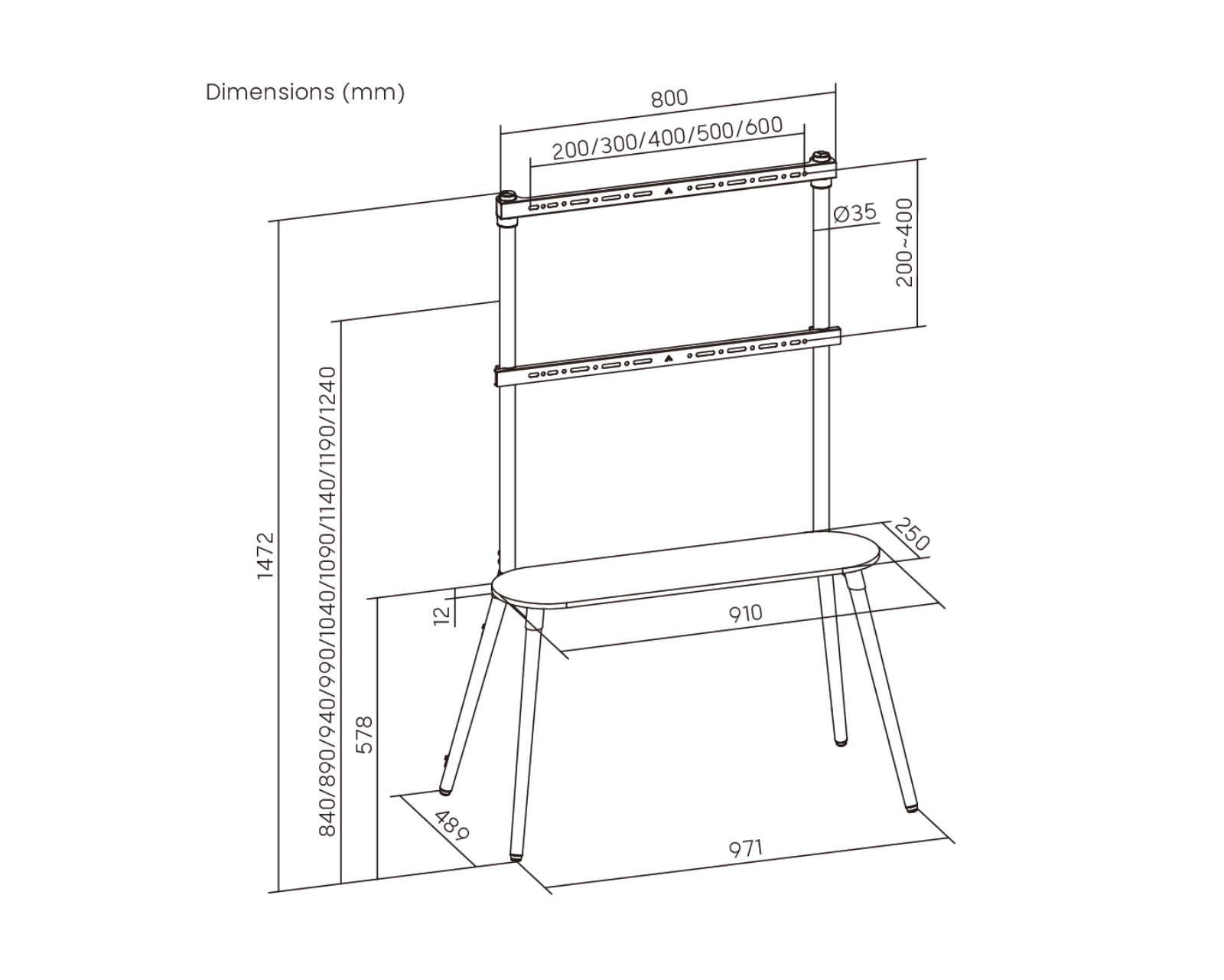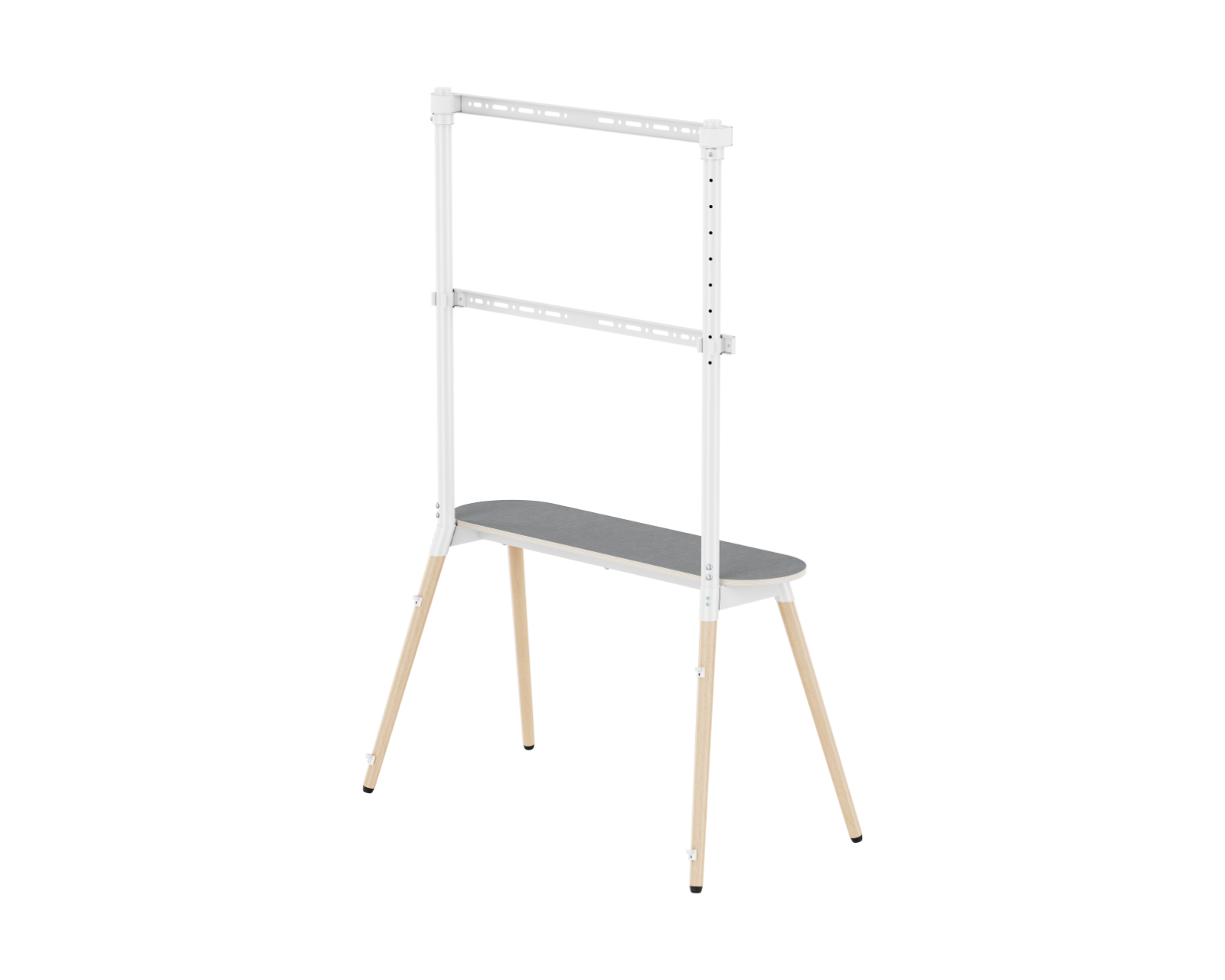 Gulvstand til TV (49"-86") med opbevaringshylde fra MaxMount kombinerer funktionalitet i form af justerbar højde og ekstra opbevaringsplads. Stativet understøtter TV-apparater mellem 49 og 86 tommer og er VESA-kompatibelt med monteringshuller op til 600x400 mm. Den maksimale vægtkapacitet for stativet er 50 kg, hvilket gør det velegnet til flere typer TV-apparater.Materialevalgene for stativet inkluderer stål, spånplade og melamin, med en overfladebehandling i pulverlakeret finish. Det er konstrueret til at være stabilt og robust, og det har beskyttende pads for at forhindre ridser og give en stabil base. For at holde kabler organiserede er der også inkluderet et kabelhåndteringssystem, som yderligere forbedrer brugeroplevelsen. Stativet har også en opbevaringshylde med en kapacitet på op til 10 kg til ekstra tilbehør, hvilket gør det mere funktionelt i hjemmet eller kontoret.