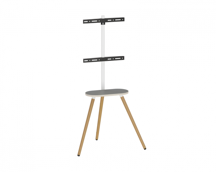 Easel Studio TV Gulvstand er et tv-stativ fra MaxMount, der kombinerer stil og funktion. Den er designet til at skabe en behagelig seeroplevelse, perfekt til hjemmebiografer, kontorer og udstillingscentre. Med en svingbar skærm, der bevæger sig mellem +45° og -45°, kan du nemt justere vinklen for at passe til dit publikum. Den blanke melaminhylde placeres direkte under TV'et og tilbyder praktisk opbevaring til fjernbetjeninger, bærbare højttalere og andre småting.Stativet er fremstillet af robuste materialer, herunder stål, aluminium og melamin, hvilket giver en stabil konstruktion med en vægtkapacitet på op til 35 kg. Med en kompakt dimension på 735x508x1365 mm kan den passe skærme mellem 43 og 65 tommer, samtidig med at den er VESA-kompatibel for nem installation. Det integrerede kabelhåndteringssystem holder kablerne organiseret og ude af vejen, hvilket bidrager til en pæn og ren installation. Sikkerhedsindstillingerne, der er inkluderet, sikrer, at stativet ikke vælter.