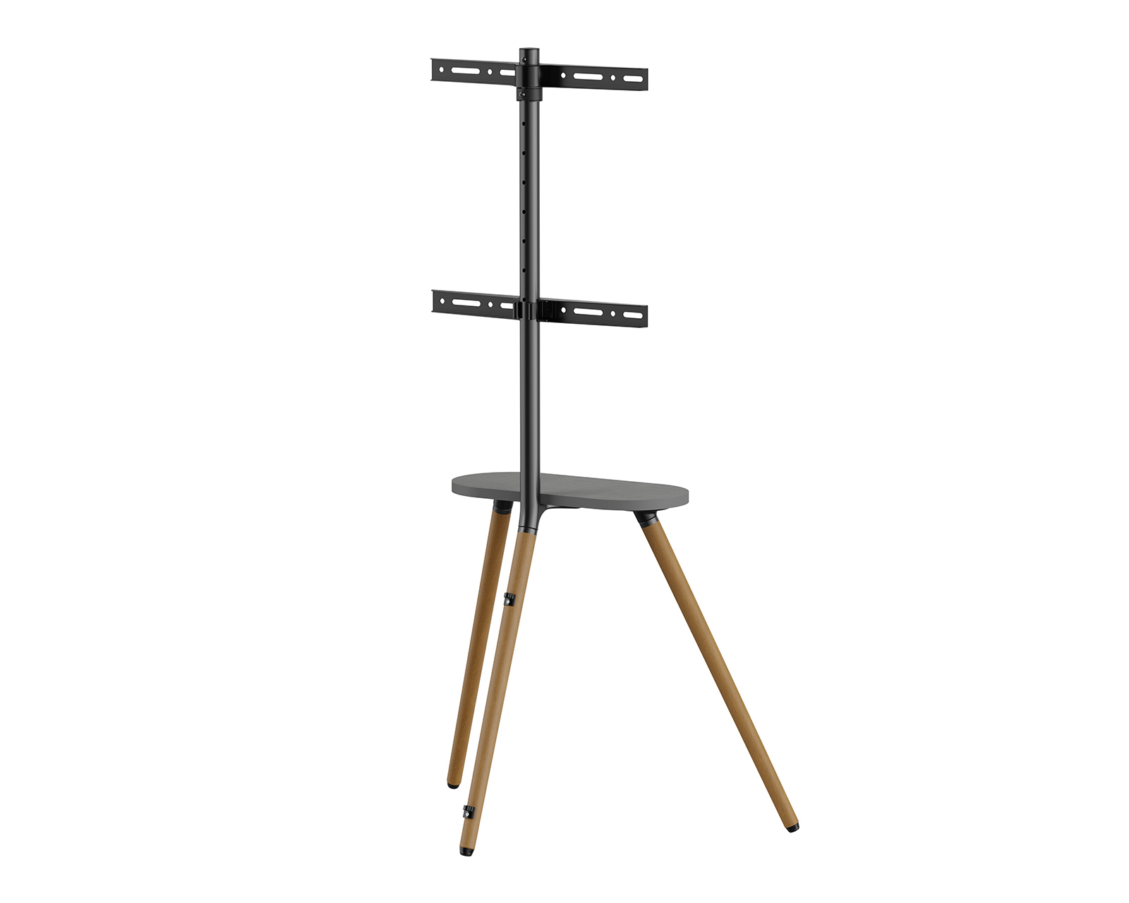 Easel Studio TV Gulvstand er et tv-stativ fra MaxMount, der kombinerer stil og funktion. Den er designet til at skabe en behagelig seeroplevelse, perfekt til hjemmebiografer, kontorer og udstillingscentre. Med en svingbar skærm, der bevæger sig mellem +45° og -45°, kan du nemt justere vinklen for at passe til dit publikum. Den blanke melaminhylde placeres direkte under TV'et og tilbyder praktisk opbevaring til fjernbetjeninger, bærbare højttalere og andre småting.Stativet er fremstillet af robuste materialer, herunder stål, aluminium og melamin, hvilket giver en stabil konstruktion med en vægtkapacitet på op til 35 kg. Med en kompakt dimension på 735x508x1365 mm kan den passe skærme mellem 43 og 65 tommer, samtidig med at den er VESA-kompatibel for nem installation. Det integrerede kabelhåndteringssystem holder kablerne organiseret og ude af vejen, hvilket bidrager til en pæn og ren installation. Sikkerhedsindstillingerne, der er inkluderet, sikrer, at stativet ikke vælter.