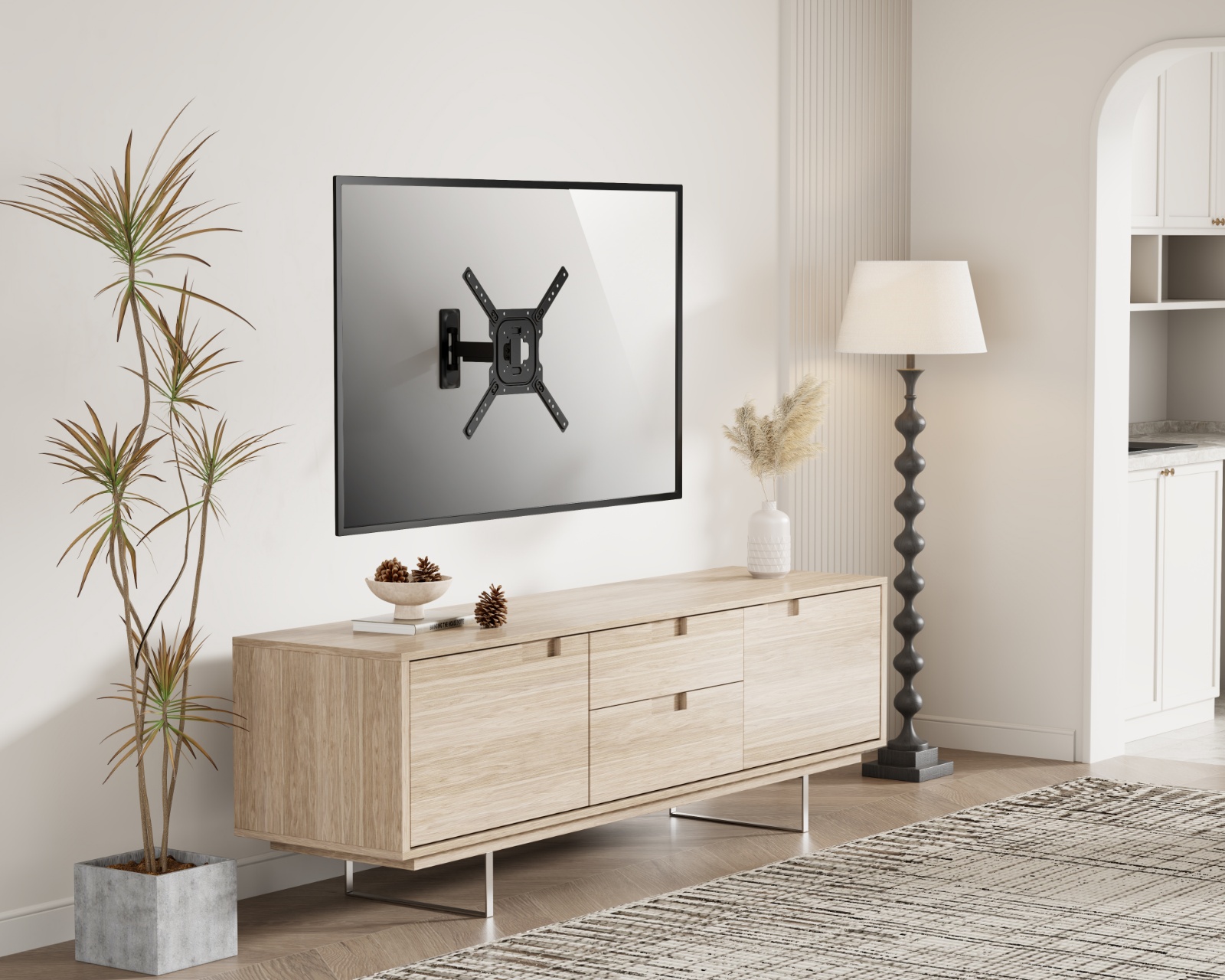 Vægbeslaget er en vægmonteringsløsning fra MaxMount, som tilbyder svingning og hældning for at maksimere seeroplevelsen. Det er kompatibelt med TV-apparater, der spænder fra 23 til 65 tommer, og er designet til både hjem brug og kontormiljøer. Med en maksimal vægtkapacitet på 35 kg gør det muligt at sikre korrekt montering af dit TV.Vægbeslaget er konstrueret af holdbart stål, hvilket sikrer en robust og stabil installation. Den fleksible hældningsfunktion, med en rækkevidde fra +90° til -90°, gør det muligt for dig at justere vinklen på dit TV for at eliminere blænding og forbedre billedkvaliteten. Derudover tilbyder den svingbare arm maksimal fleksibilitet, hvilket betyder, at du kan justere TV'et fra forskellige vinkler i rummet. Kabelhåndteringen skjuler ofte kablerne for en pæn og organiseret installation. Monteringssystemet er nemt at installere og gør det let at justere niveauet efter montering.