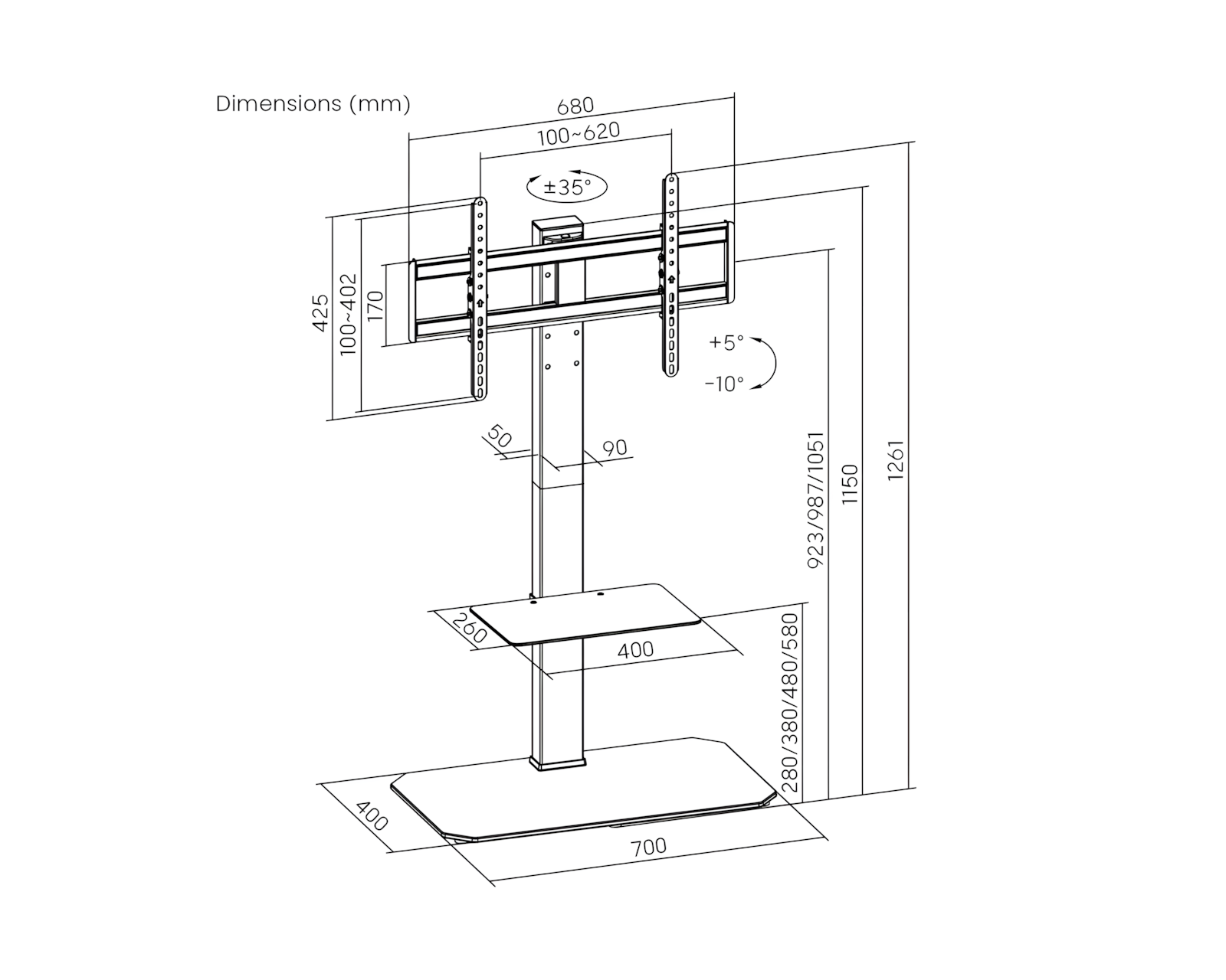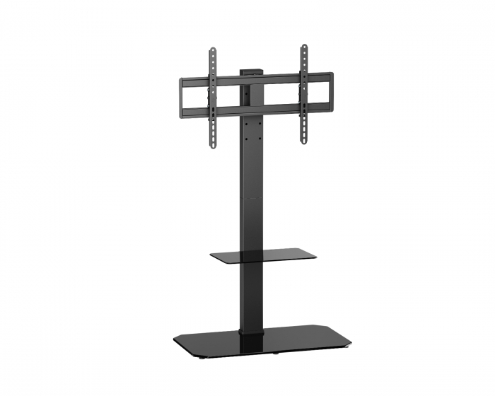 Heavy-Duty er en gulvstander til TV'er fra MaxMount. Denne holder har en kraftig stålkonstruktion, der understøtter vægten af de tungeste TV'er mellem 43 og 86 tommer uden at give efter. Med en eksplosionssikker hærdet glasbase tilbyder den stabilitet og ekstra opbevaringsplads til AV-udstyr og små genstande. Højden kan justeres for at passe til den optimale synsvinkel.Drejearmen giver maksimal fleksibilitet i tv-visningen, hvilket gør ethvert sted til det bedste sted at se tv. Integreret kabelhåndtering holder kablerne organiseret og skjult. Den ekstra udstyrshylde giver direkte adgang og mere opbevaringsplads til tilbehør, hvilket gør den til en praktisk løsning for gamere og hjemmebrugere. Byggekvaliteten og materialevalget sikrer langvarig brug. Stålrammen er designet til holdbarhed og beskyttelse af tv'er.
