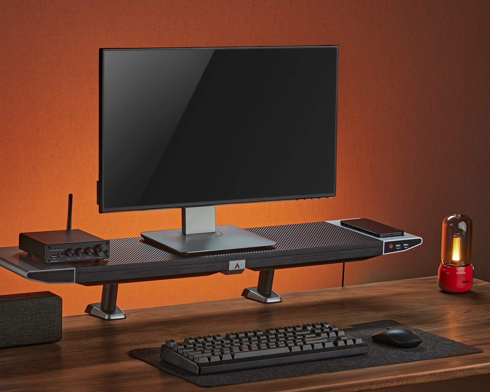 Hvis det ikke var nok, kommer dette skærmstativ også med RGB-belysning og flere USB-porte. Med denne skærmforhøjer får du bedre højde på din skærm, mens du sparer værdifuld plads på dit skrivebord. Kablet, der går til monitorstativet, er 1,8 m langt. Køb dit MaxMount-skærmstativ med RGB-belysning, og sæt et lille spil-touch på dit skrivebord, mens du får bedre ergonomi.