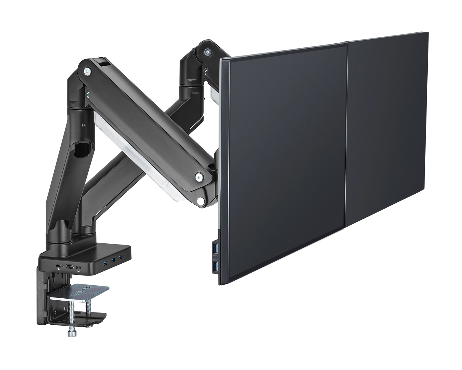 Skærmstativ Heavy-Duty Aluminium er en bildskærmsarm fra MaxMount, som tilbyder funktionalitet til to skærme. Den justerbare gasfjedermekanisme muliggør smidig vægtbalancering, hvilket letter justering til ønsket visningshøjde. Stativet er kompatibelt med skærme mellem 17 og 35 tommer og understøtter en maksimal vægt pr. skærm på op til 15 kg.Skærmstativet er fremstillet i aluminium og plastik, hvilket giver en robust konstruktion. Det er designet med VESA-montering til både 100x100 mm og 75x75 mm, og har en hældnings- og rotationskapacitet på +45° til -45° samt +90° til -90°. Forbindelsesmuligheder inkluderer HDMI, USB-C, RJ45 og PD, hvilket giver gamere og professionelle brugere adgang til alsidige porte. Kabelhåndtering er integreret for at holde arbejdsområdet ordnet og struktureret. Stativets højde er 75 cm og dybden 113 cm, hvilket giver en stabil grund, når det monteres med klemme eller fritstående.