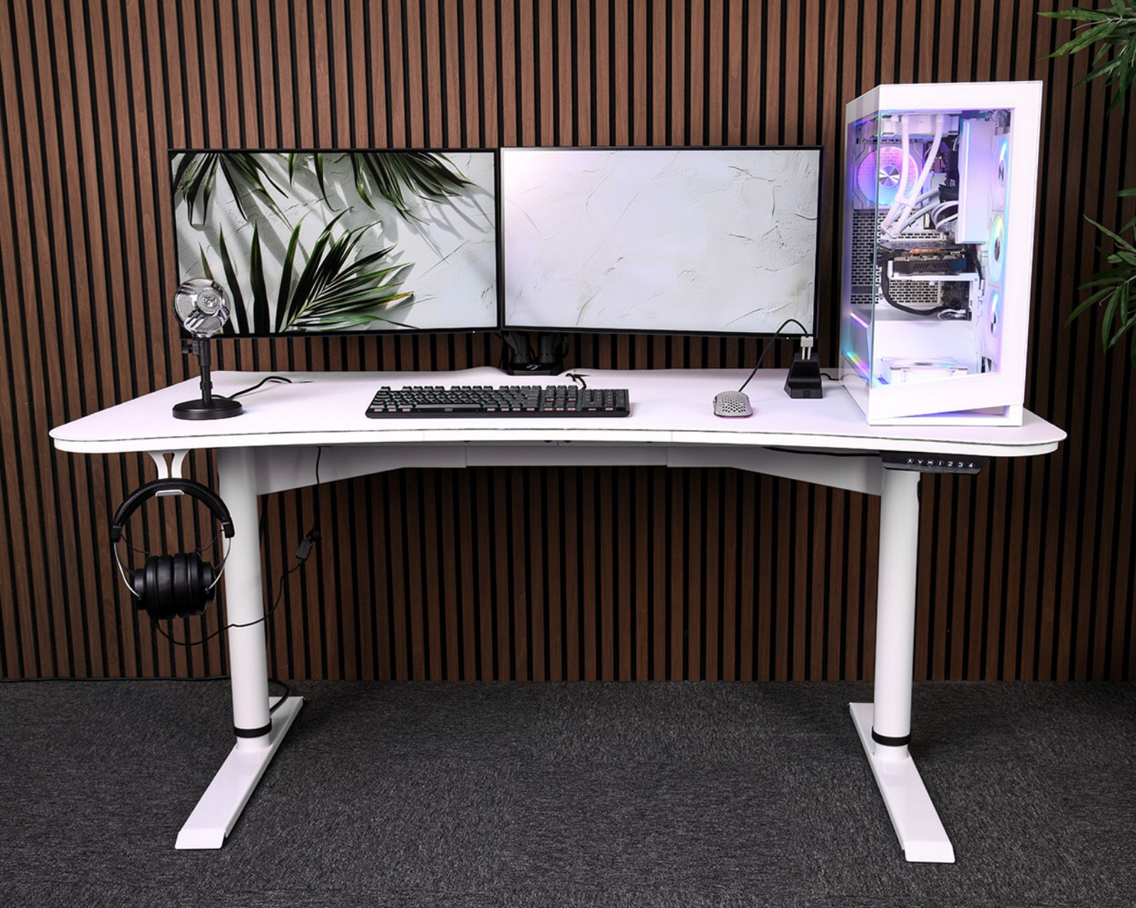 Arena er et skrivebord fra Arozzi, der kombinerer funktionalitet med en stabil konstruktion. Dette skrivebord er designet til gamere og tilbyder en god arbejdsplads til både gaming og arbejde. Med justerbar højde mellem 73 og 117 cm, en bredde på 160 cm samt en dybde på 82 cm, giver det plads til flere skærme og tilbehør, hvilket gør det ideelt til den dedikerede gamer.Materialet har en robust bygg kvalitet og kan klare en maksimal belastning på 120 kg, hvilket sikrer stabilitet selv ved intensiv brug. Det er designet uden belysning, som giver et rent og stilrent udseende i hvid. Bordet indeholder også effektiv kabelhåndtering for at holde arbejdsområdet organiseret og fri for kabler. Dette gør det nemt at håndtere udstyret uden at det bliver rodet.