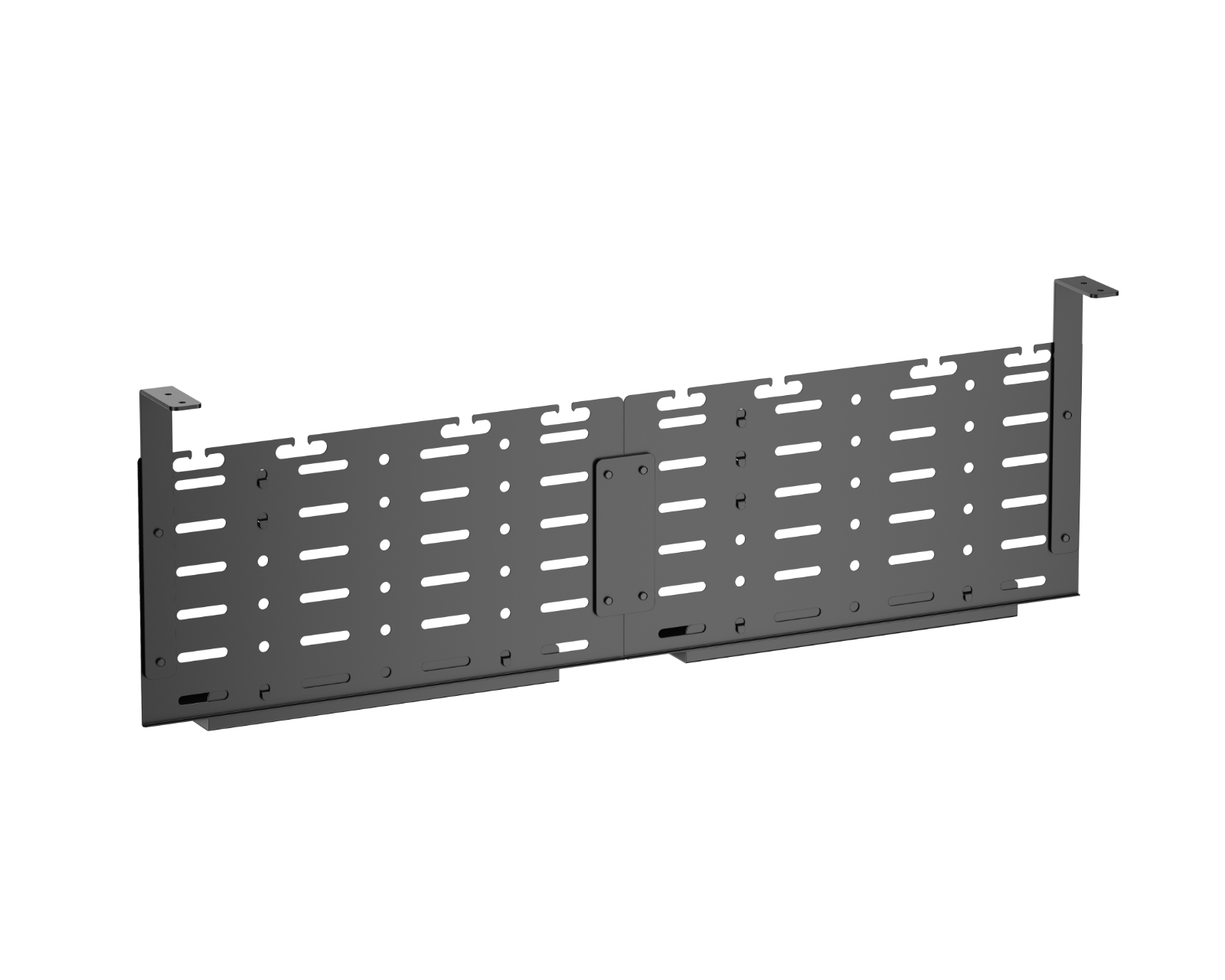 Vertikal kabelkurv til skrivebordet er en kabelhåndteringsløsning fra MaxMount. Den har et enkelt design, der skjuler kabler og strømkabler for at skabe en ren arbejdsplads. Den udvidede bakke kan tilpasses til skriveborde af forskellige størrelser og giver nem adgang til kabler og strømskinner, hvilket letter installation og vedligeholdelse.Materialet i kabelbakken er holdbart og af høj kvalitet, hvilket sikrer langvarig brug. Den er specifikt designet til at kunne klemmen under skrivebordet, så den står stabilt. Den er effektivt udstyret med flere kabelåbninger, som gør, at du kan håndtere kabelbevægelserne og fordele dem korrekt uden rod. De forskellige kabelslots hjælper med at organisere og stabilisere kablerne, hvilket bidrager til et bedre og mere effektivt arbejdsmiljø.