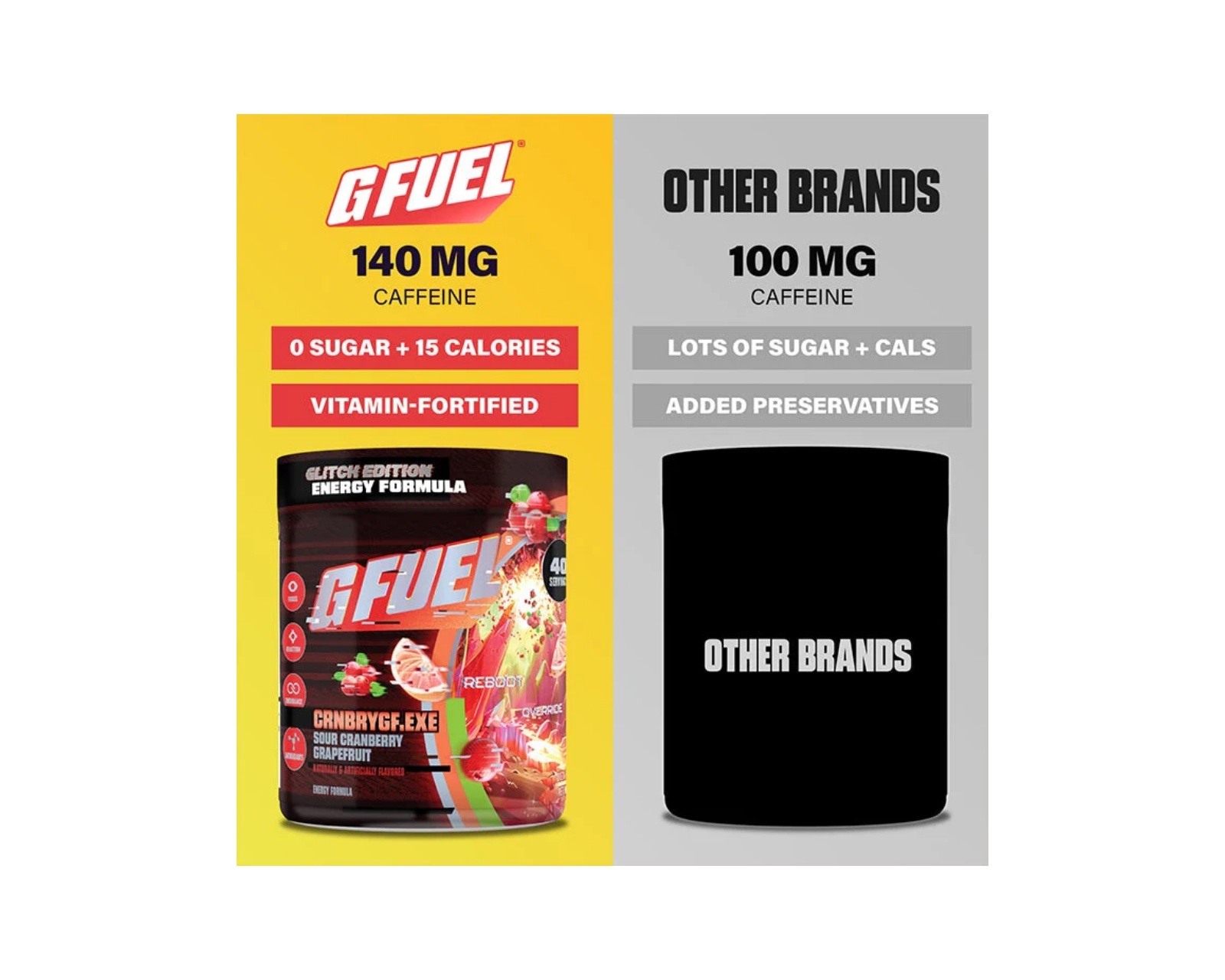 G FUEL Energy Drink er det ultimative tilskud til gamere, kreative, studerende og atleter. Med sin omhyggeligt udformede, sukkerfri opskrift og førsteklasses ingredienser giver G FUEL dig den perfekte kombination af energi, fokus og udholdenhed til at tackle enhver udfordring, du står over for i løbet af dagen.