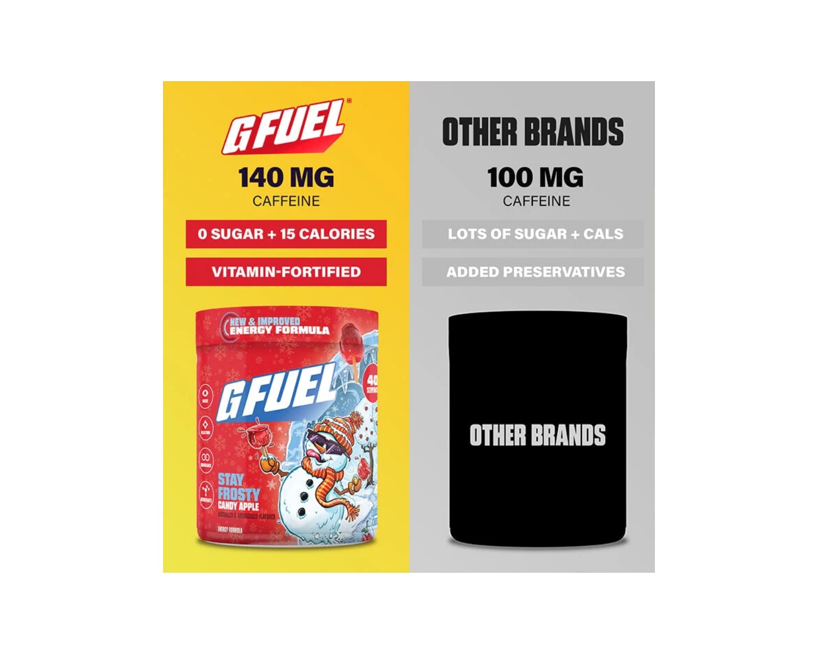 Stay Frosty fra G FUEL kombinerer en frisk smag af candy apple med et effektivt energikick. Produktet indeholder 140 mg koffein pr. portion og tilbyder hele 40 serveringer for langvarig støtte under både spil og arbejde. Den har intet tilsat sukker og er derfor et godt alternativ for dem, der ønsker at undgå sødning uden at gå på kompromis med smagen.En velsmagende og funktionel drik, Stay Frosty er designet til at give ekstra energi og forbedret fokus. Den unikke blanding af ingredienser giver en optimal balance af antioxidanter og præstationsfremmende stoffer. Den gule farve og den velsmagende smagsprofil gør den til et perfekt supplement for alle, der ønsker at holde sig vågne under hektiske stunder. Især i vintermånederne skaber den en magisk atmosfære af festligheder og giver en opfriskende følelse ved hver slurk. Med 40 portioner tilgængelige er Stay Frosty en ideel følgesvend til både studier og gaming-sessioner.