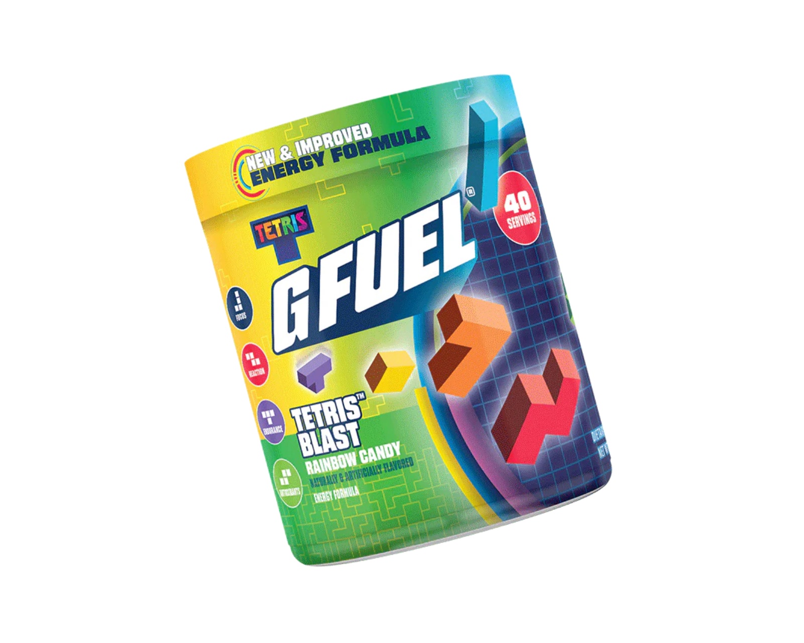 Tetris Blast 2.0 fra G FUEL, som tilbyder 40 portioner med 140 mg koffein pr. servering.Drikken indeholder ingen tilsatte sukkerarter og har en smagsprofil af Rainbow Candy, som giver en frugtig og syrlig oplevelse.