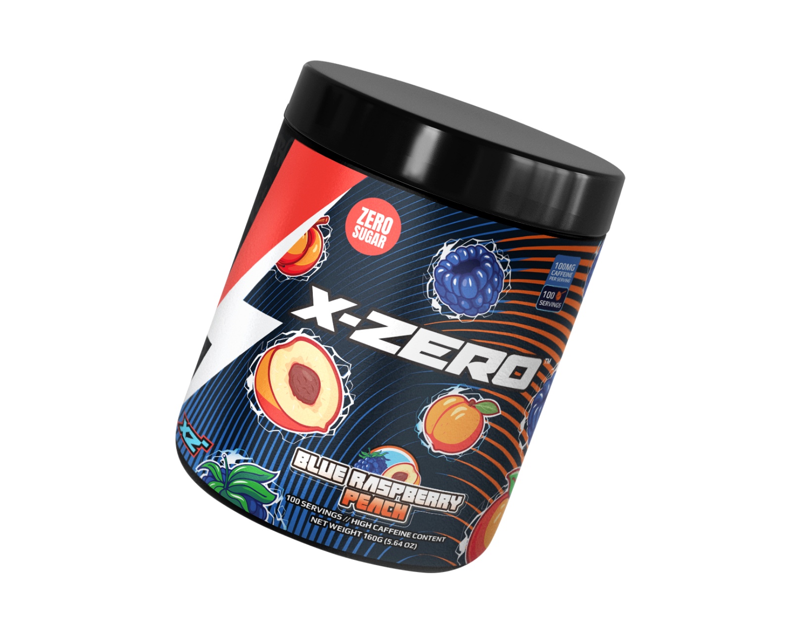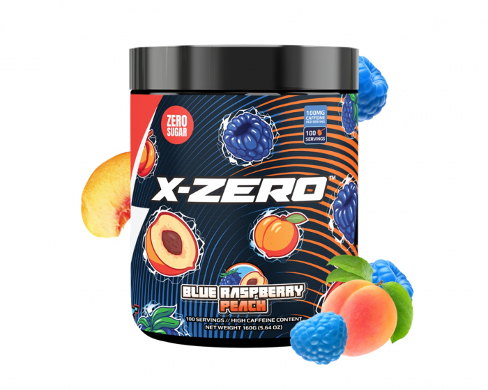X-Zero Blue Raspberry Peach er en drik fra X-Gamer, der kombinerer smag og kosttilskud i en enkel dosering. Produktet indeholder 100 portioner og tilbyder et energisk boost med et koffeinindhold på 100 mg per portion. Den er beregnet til gameren, der søger en måde at øge sin koncentration og udholdenhed under spillet.Drikken er produceret med fokus på kvalitet og smag, hvor blå hindbær- og ferskenaromaer giver en frisk og tiltalende blanding. Den vejer 160 gram i alt og leveres i en sort og blå emballage, hvilket gør den både stilren og funktionel. X-Zero passer til dem, der er 15 år og ældre, hvilket gør den til en passende energikilde for unge og voksne i gaming-miljøet.