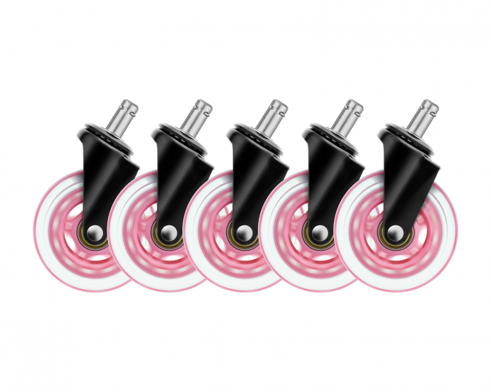 Tilpas din spillestol med disse robuste og stilfulde gummi- og stålhjul. Hjulene er sikre på både trægulve og med gulvtæppe, oplever stille og jævne bevægelser med godt greb. 3-tommer diameter (7,62 cm), med en universel pasform. Hjulene bærer vægt op til 300 kg.Dækkene fås i forskellige farver, så du kan tilpasse din stol til den farve, du ønsker. Lad ikke trægulve eller tæpper stoppe dig, oplev glat rullende med disse lette at installere stolehjul.