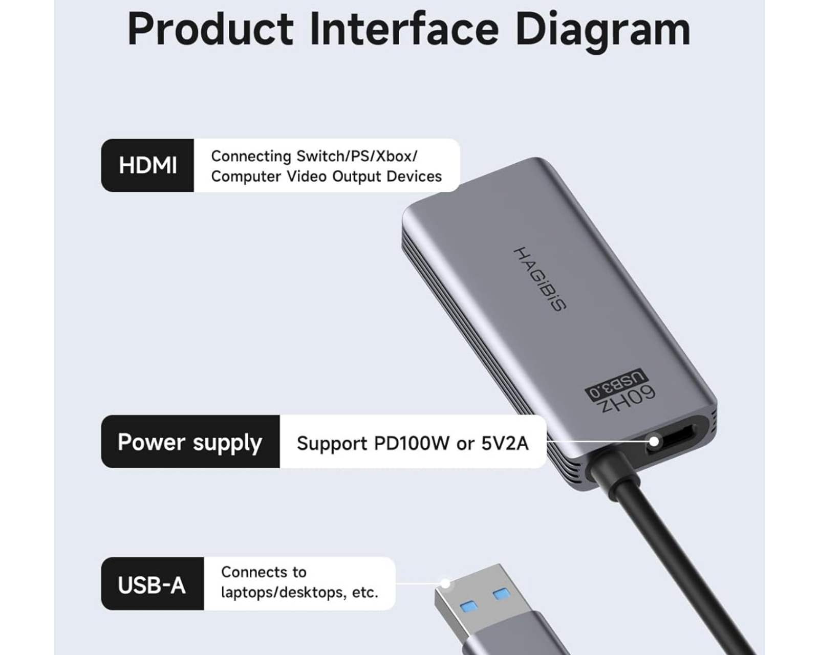 Hagibis videooptagelseskort er en video capture enhed fra Hagibis, som muliggør optagelse af HD-video og lyd. Den har en maksimal opløsning på 1080p ved 60 billeder pr. sekund, hvilket gør den velegnet til gamere og brugere, der søger at streame eller optage kvalitetsindhold. Den har både HDMI og USB Type-C forbindelser, hvilket gør den kompatibel med mange forskellige enheder såsom bærbare computere, tablets, mobiltelefoner, Xbox og PS4/5.Enheden er konstrueret med et innovativt dobbeltforbindelsesdesign, der eliminerer problemer med grænsefladekompatibilitet. Den er plug & play, hvilket betyder, at den kan bruges uden behov for drivere eller ekstern strømforsyning. Det kompakte format gør den nem at transportere og passer udmærket til livestreaming både indendørs og udendørs. Videooptagelseskortet er designet til at levere meget god video- og lydkvalitet under optagelse.
