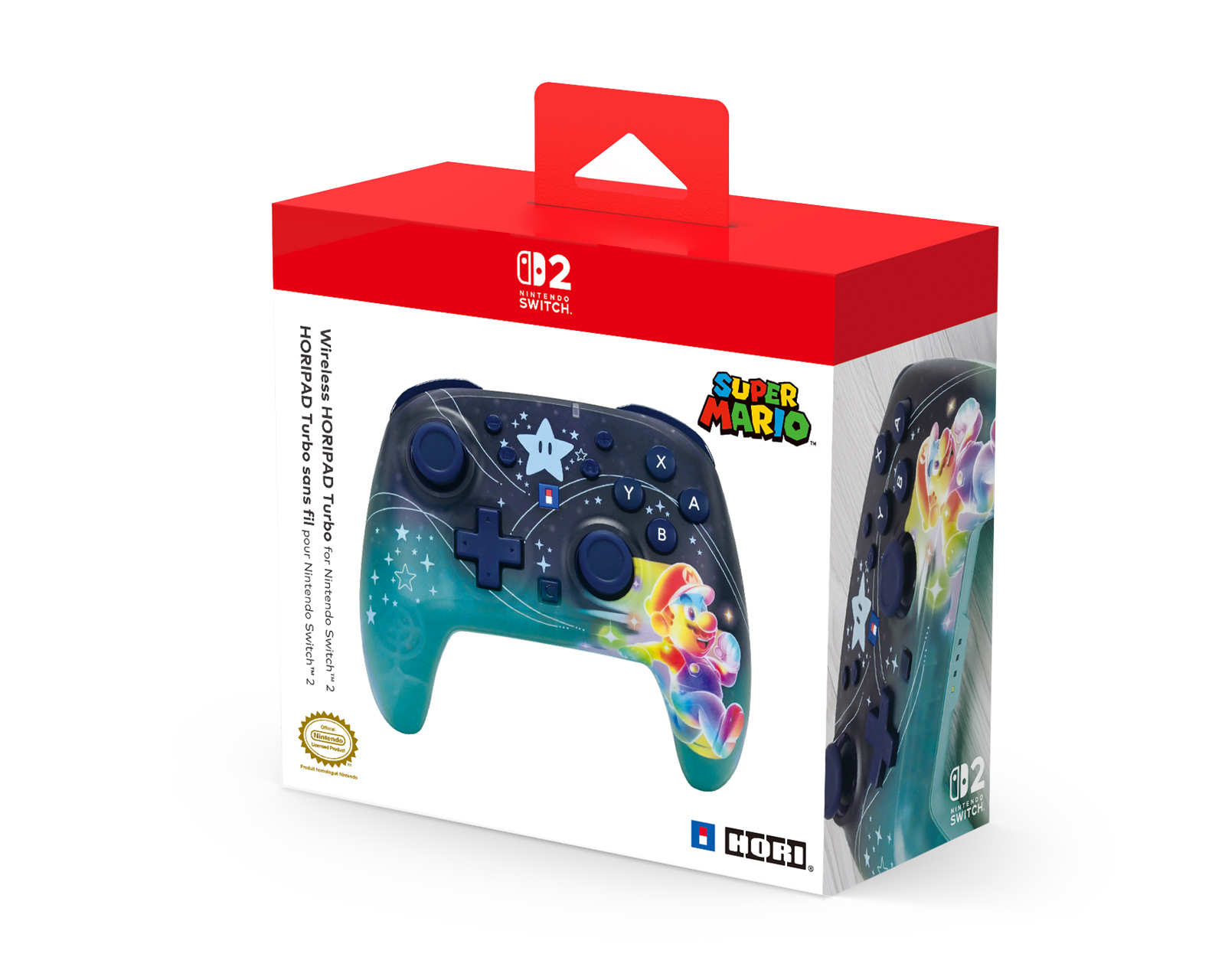 HoriPad Turbo er en trådløs controller fra Hori, designet til Nintendo Switch 2. Den tilbyder et ergonomisk og gennemsigtigt design, der kombinerer komfort og stil, hvilket gør den ideel til lange spilsessioner. Controlleren er udstyret med et genopladeligt batteri, der giver op til 10 timers spilletid på en enkelt opladning.Byggekvaliteten hos HoriPad Turbo er høj, med holdbare TMR-sticks for præcisionsstyring og et indbygget gyroskop, der muliggør avanceret spilkontrol gennem bevægelse. Det trådløse forbindelsessystem har en rækkevidde på op til 10 meter, hvilket giver spillere friheden til at bevæge sig uden begrænsninger. Kontrollen har også programmerbare bagknapper og en knaplåsefunktion for at forhindre utilsigtede indtastninger under intense spilstunder. Desuden er den officielt licenseret af Nintendo, hvilket sikrer kompatibilitet og kvalitet.