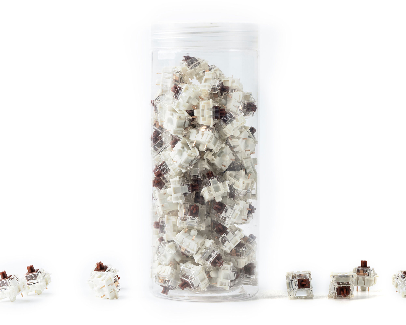 Switchene er lavet med POM, MX frempind og har et gennemsigtigt pc-hus, der giver et stilfuldt look, mens de understøtter SMD LED til tilpasset RGB-belysning. Den hvide base er lavet af slidstærkt Nylon PA66, og fjedrene er lavet af fjederstål for øget holdbarhed.