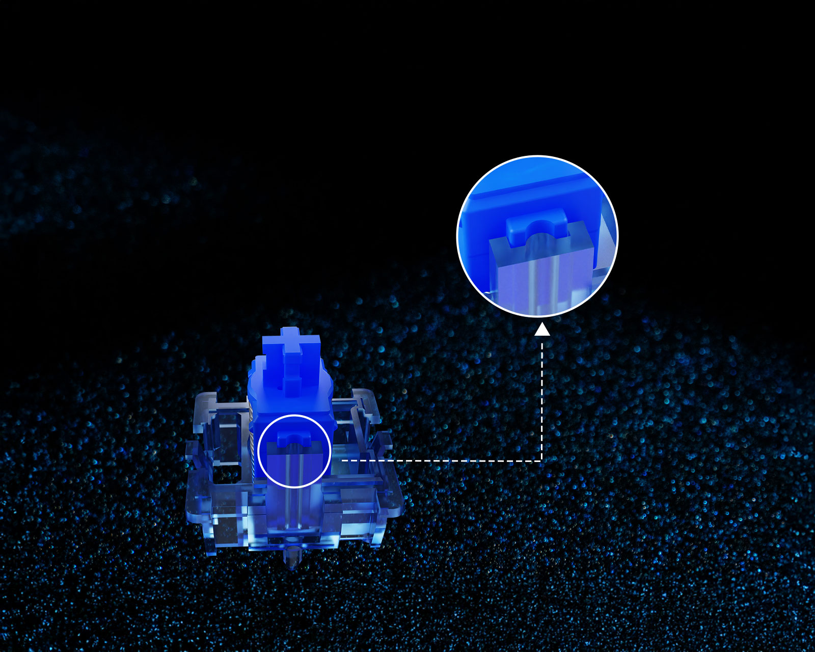 Magnetic Jade Sapphire HE er en lineær kontakt fra Gateron. Den tilbyder en startkraft på 36±5gf og et bunddækket design, der effektivt reducerer slingren i frempinden. Med en samlet vandring på 3,5±0,1 mm og en bottom-out på 50±10gf giver den en stabil og pålidelig fornemmelse under brug.Afbryderens øverste hus er transparent og har en glittereffekt, der lyser i en dybblå nuance. Den kuppelformede lyslederdiffusor hjælper med at øge lystransmissionen og skaber en blødere lysspredning. Den har også en specialfremstillet 20 mm fjeder og er fabrikssmurt, hvilket giver en jævn og behagelig fornemmelse, når du bruger afbryderen.