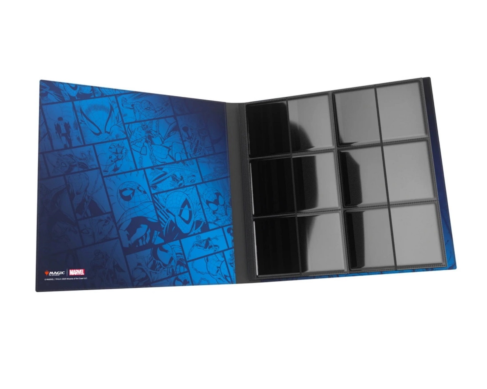 Spider-Man 24-pocket album er et samleralbum fra Magic: The Gathering, specielt designet til at organisere og beskytte Magic: The Gathering-kort. Albummet kan rumme op til 480 kort, også med dobbelt sleeves, takket være sine 20 sider med 24 sideladede lommer. Det farverige omslag har høj kvalitets full-art tryk, der er karakteristisk for spillet.Den brede elastiske rem og de forstærkede sømme sikrer, at indholdet forbliver på plads, og at albummet er holdbart til regelmæssig brug. Materialet er af høj kvalitet, og siderne er sorte, hvilket giver en stilren præsentation af kortene. Lommerne er designet med rækker af fire, hvilket optimalt understøtter arrangeringen af spillosset. Med en produktstørrelse på 310 x 28 x 305 mm passer albummet godt til både opbevaring og udstilling.