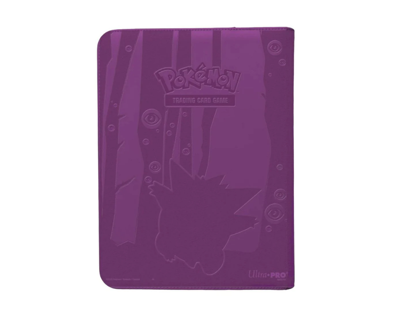 Ultra PRO: Elite Series Gengar 12-pocket Zipper Binder er en opbevaringsløsning til samlekort fra Pokémon. Denne binder er specielt designet til at organisere disse kort og har et stilrent design med et Gengar-motiv. Den er kompatibel med Ultra PRO Deck Protector®-sleeves og tilbyder plads til op til 480 kort, hvilket gør den passende til både nybegyndere og erfarne samlere. Den er også udstyret med en lynlås for sikker opbevaring af samlingen.Denne binder er fremstillet med et polstret læderlook, der giver en elegant finish, og inkluderer foil-detaljer for ekstra stil. Mappen rummer tyve sider, hver med tolv lommer, hvilket sikrer både struktur og adgang til kortene. Siderne er designet med en sort bagside af lav friktion, hvilket holder kortene adskilt og giver dem et indrammet udseende. Binder er lavet af syrefri, ikke-PVC-materialer, hvilket hjælper med at bevare kortenes tilstand over tid.