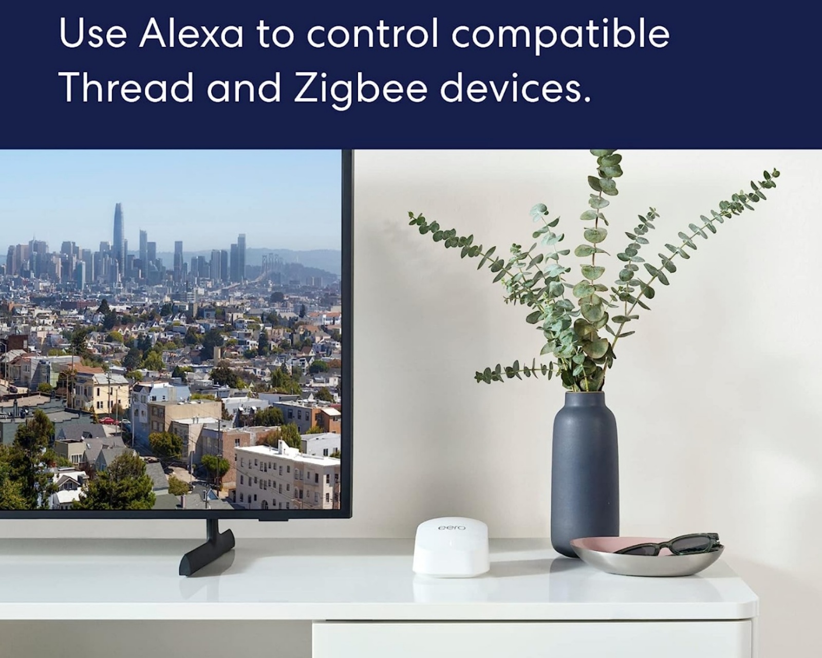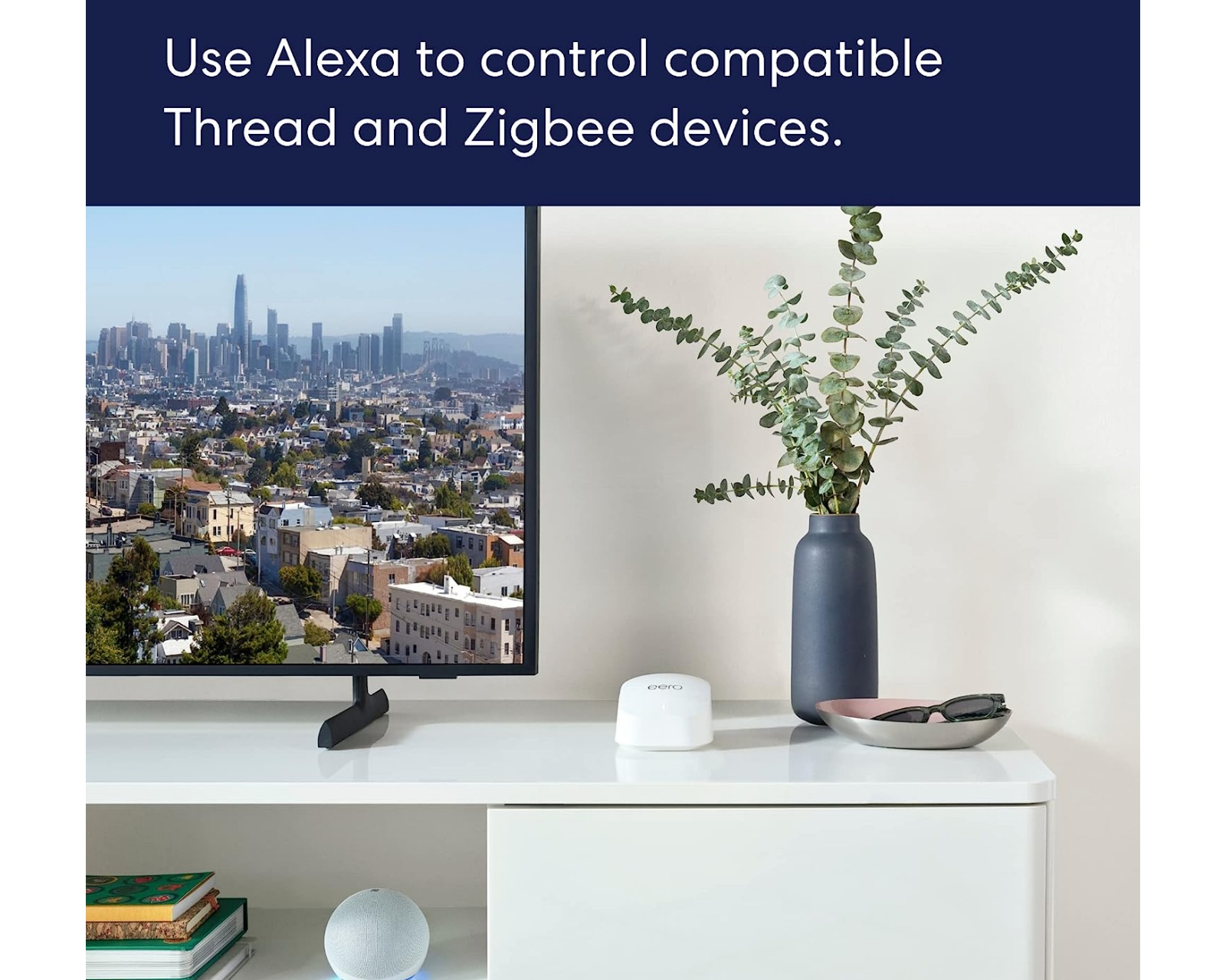6+ WiFi 6-meshrouter fra Eero, designet til at give pålidelig og stabil Wi-Fi-forbindelse i hele hjemmet. Med en hastighed på op til 1 Gbps og 160 MHz båndbredde sikrer denne router høj ydeevne for flere enheder samtidig. Ved at dække et område på op til 140 m² eliminerer eero 6+ døde zoner og tilbyder en sømløs netværksoplevelse.Eero 6+ er bygget til at håndtere over 75 tilsluttede enheder, hvilket gør den ideel til husholdninger med flere brugere. TrueMesh-teknologien forbedrer netværkets robusthed ved at optimere trafikken og reducere afbrydelser. Den indbyggede hub til smarte hjemmeenheder muliggør nem integration af kompatible Thread- og Zigbee-enheder til dit netværk, hvilket giver centraliseret kontrol via Alexa. Routeren er nem at installere, så du kan få gang i dit smarte hjem inden for få minutter.