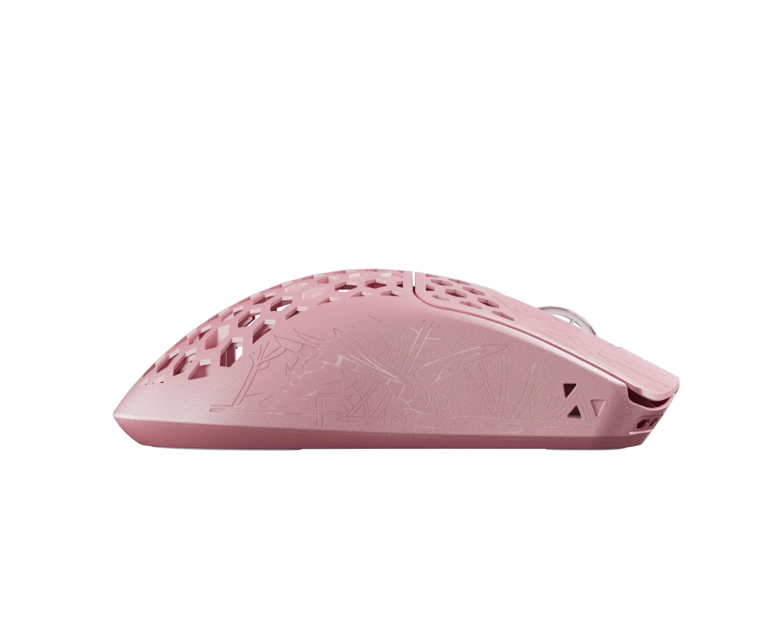 AKITSU Medium Carbon Fiber er en banebrydende trådløs gamingmus fra Arbiter Studio, bygget med avanceret kulkomposit for at sikre ultralav vægt og holdbarhed. Udstyret med den opgraderede Pixart 3950 sensor tilbyder denne mus en imponerende opløsning på op til 30.000 DPI og følger bevægelser med hastigheder op til 750 IPS. Den er designet til gamere, som kræver præcis kontrol og hastighed, hvilket gør den til et fremragende valg for både casual og professionelle spillere.Byggekvaliteten hos AKITSU Medium er exceptionel. Den symmetriske design vejer kun 40 gram og er fremstillet i fuld kulfiberkomposit, hvilket gør den let og robust. 8K Hz polling rate sikrer, at musens bevægelser registreres ekstremt hurtigt. Med op til 60 timers brug på en opladning, kan du være sikker på, at den klarer lange spilsessioner. Den integrerede Nordisk 52840 Wireless Hyperspeed MCU og Huano blue shell pink dot mikro-switcher lover langvarig ydeevne med op til 80 millioner kliklevetid.
