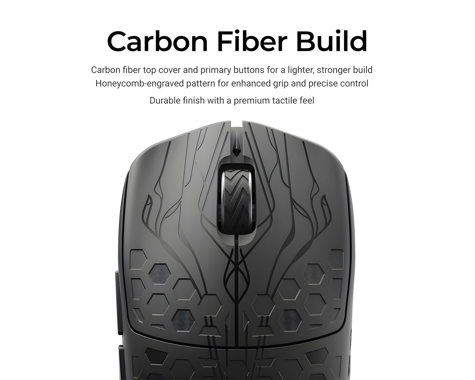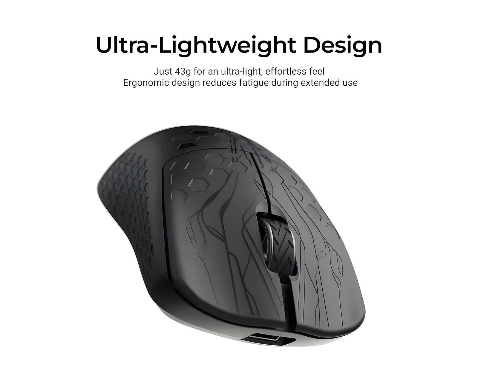 G5 8K Ultra Light Trådløs Mus er en mus fra Keychron, som kombinerer et letvægtsdesign med overlegen ydeevne. Den er udstyret med en avanceret PixArt 3950-sensor og tilbyder både 2,4 GHz og Bluetooth-forbindelser for en fleksibel anvendelse. Med et ergonomisk designet skal giver den komfort under lange sessioner.Produktet vejer kun 43 gram takket være sin kulfiberkonstruktion, hvilket garanterer en robust og holdbar oplevelse uden at gå på kompromis med vægten. Forbindelsen via 2,4 GHz giver lav latenstid og hurtig respons, hvilket er afgørende for både gaming og kontorarbejde. Den har en DPI på op til 20.000, hvilket muliggør høj præcision og hurtige bevægelser. G5 tilbyder op til otte forskellige polling rates, inklusive 8000 Hz, hvilket resulterer i en responstid på kun 0,41 ms i 2,4 GHz-tilstand.