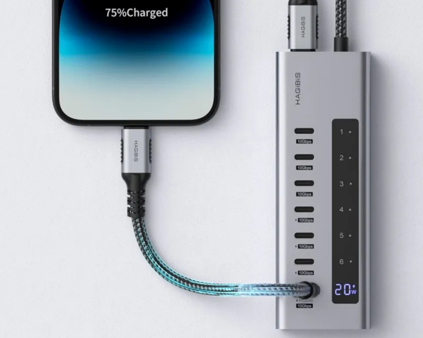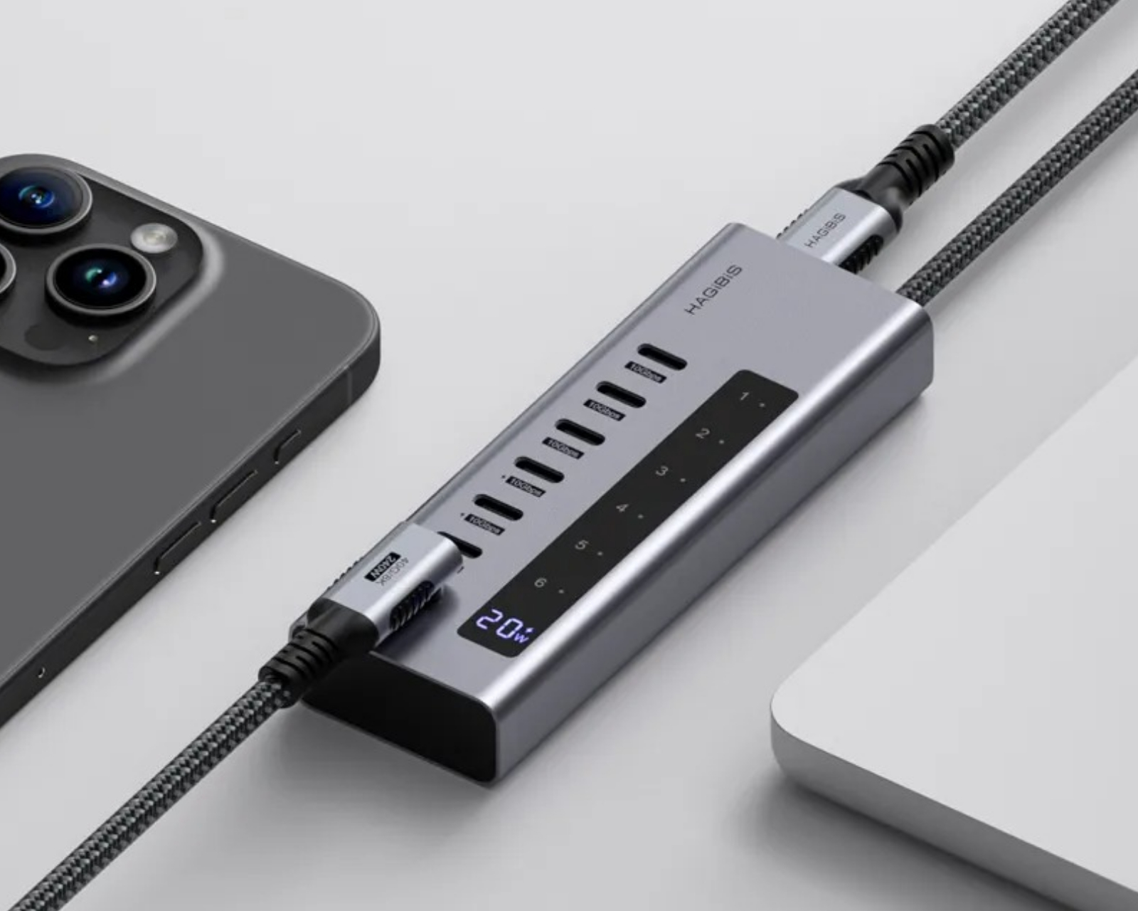 USB C Hub BH206D er en dockingstation fra Hagibis, som muliggør hurtig dataoverførsel og effektive lade-muligheder. Den tilbyder en overførselshastighed på op til 10 Gbps og en LED-skærm, der giver realtidsinformation om ladestatus. Den er designet til at udvide antallet af tilgængelige porte og forbinde flere enheder uden begrænsninger. Denne hub er udstyret med en ekstern PD-lader, som letter tilslutningen af kraftfulde enheder og muliggør PD-ladning for visse porte.Ved hjælp af den LED-digitale skærm kan brugere nemt følge med i, hvor meget strøm der overføres, hvilket maksimerer effektiviteten ved brug. Materialevalget i konstruktionen sikrer både holdbarhed og et stilrent design. USB C Hub BH206D passer fremragende til gamere og professionelle brugere, der kræver hurtige og stabile forbindelser.