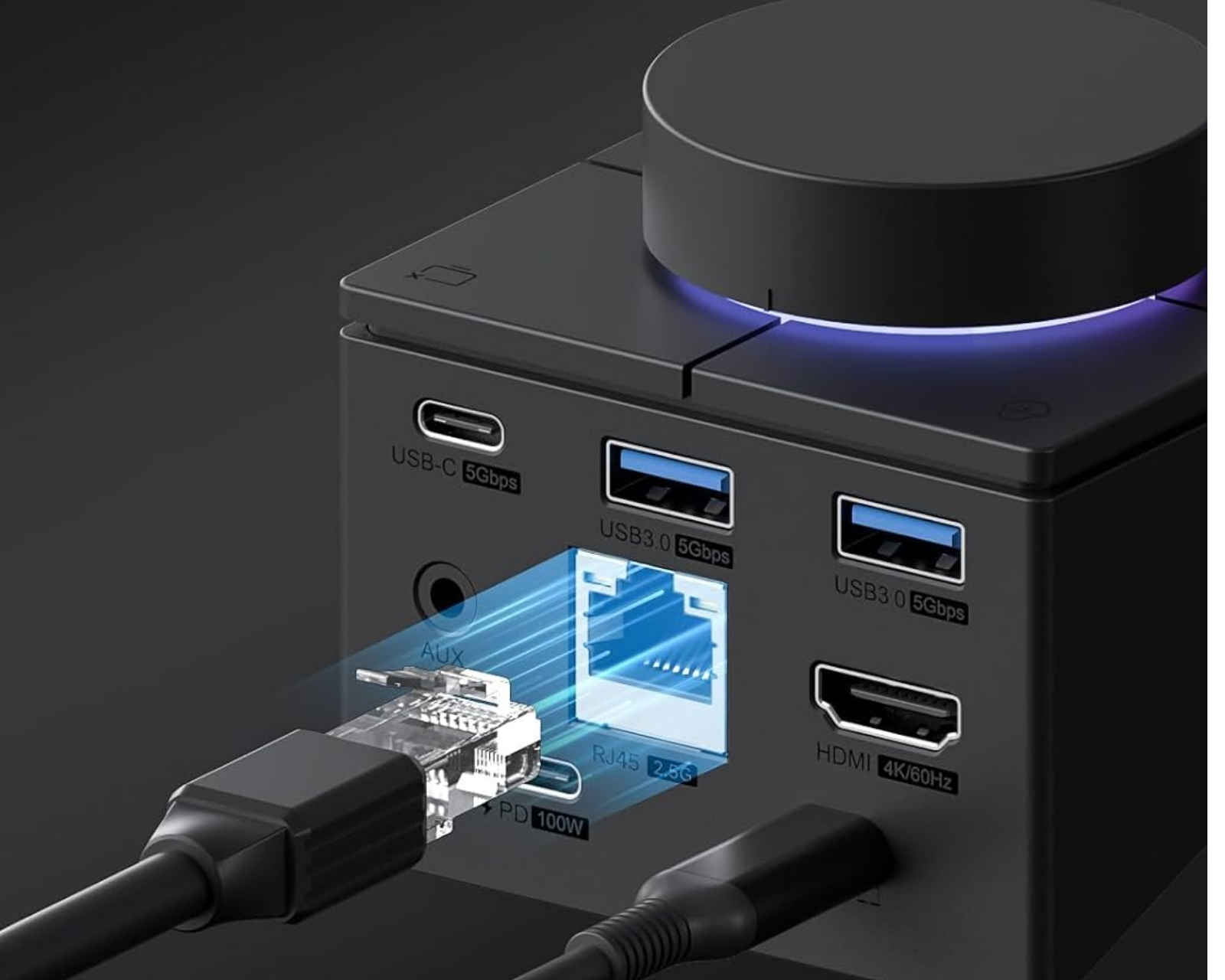Hagibis UC-1102A er en USB C-hub, der integrerer flere funktioner i én enhed. Denne dockingstation tilbyder 9-i-1 kapacitet samt RGB-belysning, en volumenknap og genvejsknapper til hurtig adgang. Den er designet til brug med USB-C-enheder, herunder MacBook, iPad Pro og laptops. Denne hub har en HDMI-port, som understøtter opløsninger op til 4K@60Hz, hvilket muliggør tilslutning til HDTV og skærme til høj kvalitets video behov.Med en 100W strømforsyning (87W for sikkerheds skyld) kan tilsluttede enheder også oplades effektivt. Hubben inkluderer også fem porte med hastigheder op til 5Gbps, som er kompatible med USB A 2.0 og lavere. RJ45-porten tilvejebringer en hurtig og stabil netværksforbindelse op til 2.5Gbps.