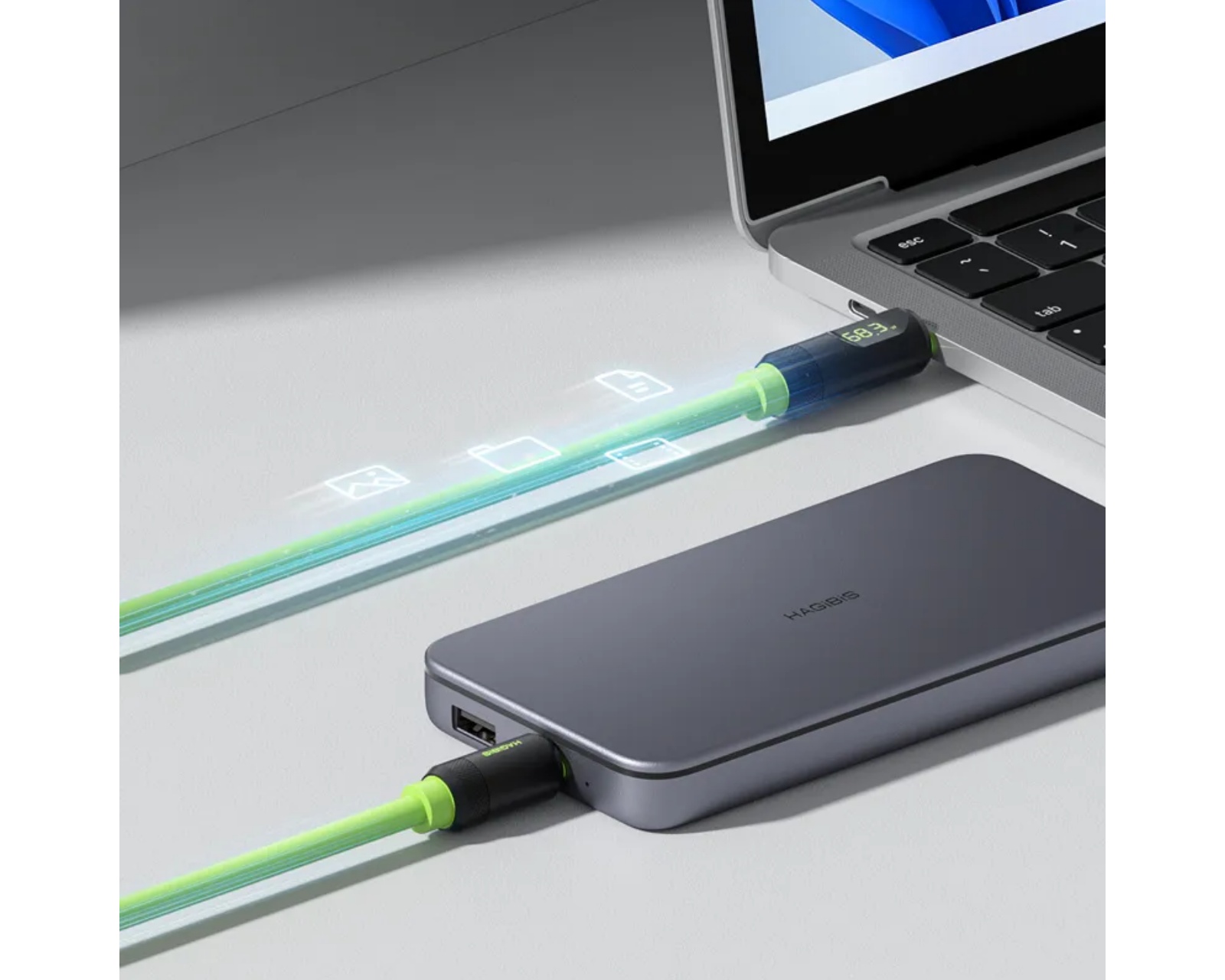 USB4 Kabel SX02 0.25M er et USB-C-kabel fra Hagibis, der tilbyder hurtig og effektiv opladning samt dataoverførsel. Kabelen understøtter opladningshastigheder op til 240W (48V 5A) og er kompatibel med PD3.1, hvilket sikrer, at den fungerer med både moderne og ældre enheder. Den kan anvendes til at oplade alt fra smartphones til bærbare computere.Kabelen er designet til at understøtte UHD-opløsning og gør det muligt at tilslutte en laptop til en ekstern skærm med en opløsning op til 8K@60Hz eller to 4K@60Hz-skærme samtidig, forudsat at enhederne understøtter DP Alt Mode. Med en overførselshastighed på op til 40Gbps, der følger USB4.0-standarden, kan brugere hurtigt flytte store filer, herunder musik og film. Kabelen er også bagudkompatibel med USB4-enheder, der understøtter 20Gbps.