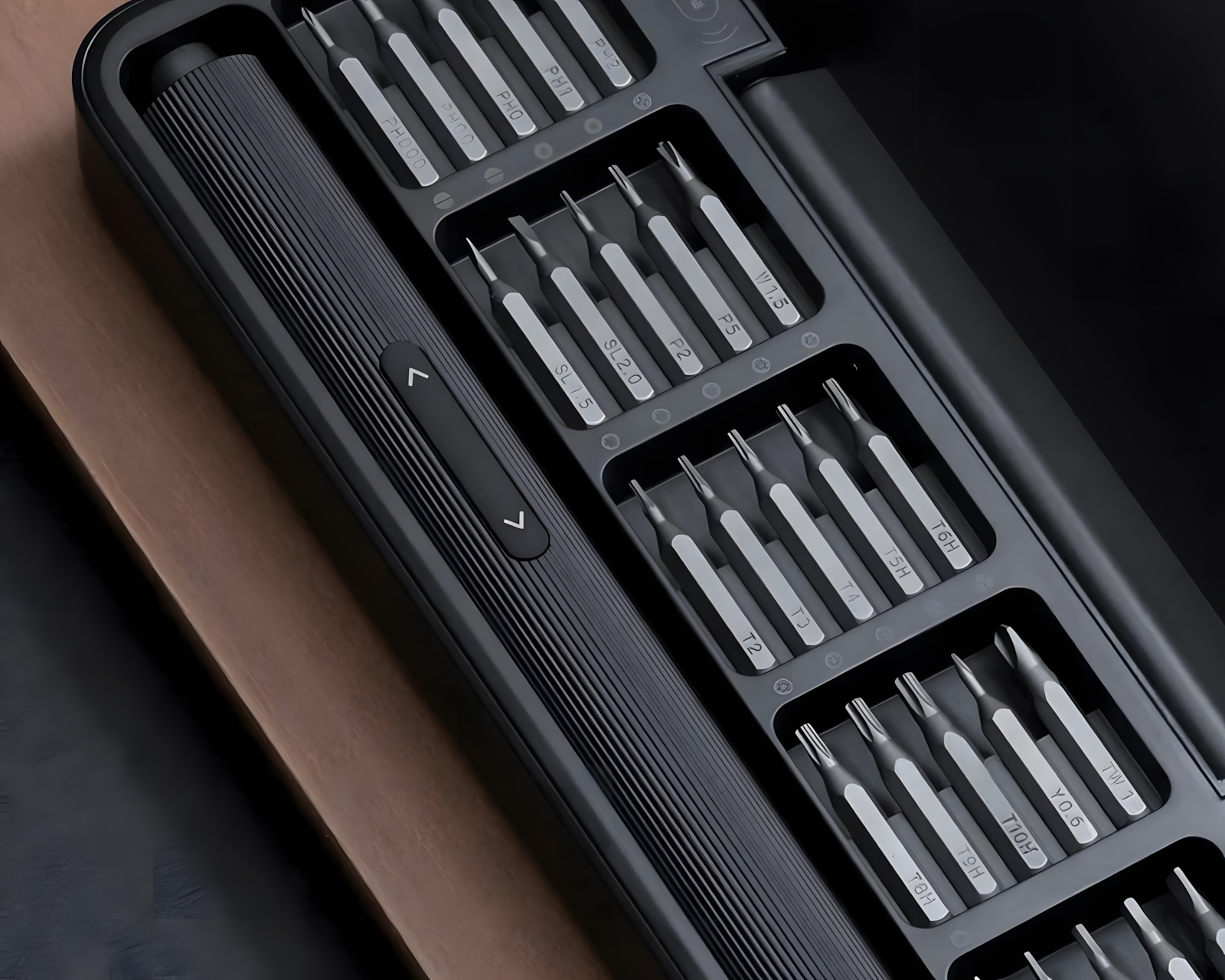 25-i-1 Elektrisk Skruetrækker er en kompakt og kraftfuld enhed fra HOTO, designet til at håndtere præcisionsskruetrækning i forskellige projekter. Sættet omfatter 25 S2-stålsbits og tilbyder både auto- og manuelle tilstande, hvilket giver brugeren fleksibilitet i arbejdet. Den har også et ergonomisk design med et skridsikkert aluminiumscover og en enknapstyring for nem brug.Enheden indeholder et bredt udvalg af 25 S2-stålsbits, herunder Phillips, Torx, Spår, Sekskant, Pozidriv, Fyrkant og sikkerhedsbits, hvilket gør, at den kan bruges på forskellige typer skruer. Den indbyggede magnetiserer forbedrer grebet om mikro-skruer og forhindrer frustration ved håndtering af små dele. Med et USB-C-genopladeligt batteri og en tofaret indikator for batterihelse sikres det, at enhedens kraft altid er tilgængelig. De anodiserede bits og det skridsikre låg i aluminiumlegering giver også en god byggekvalitet.