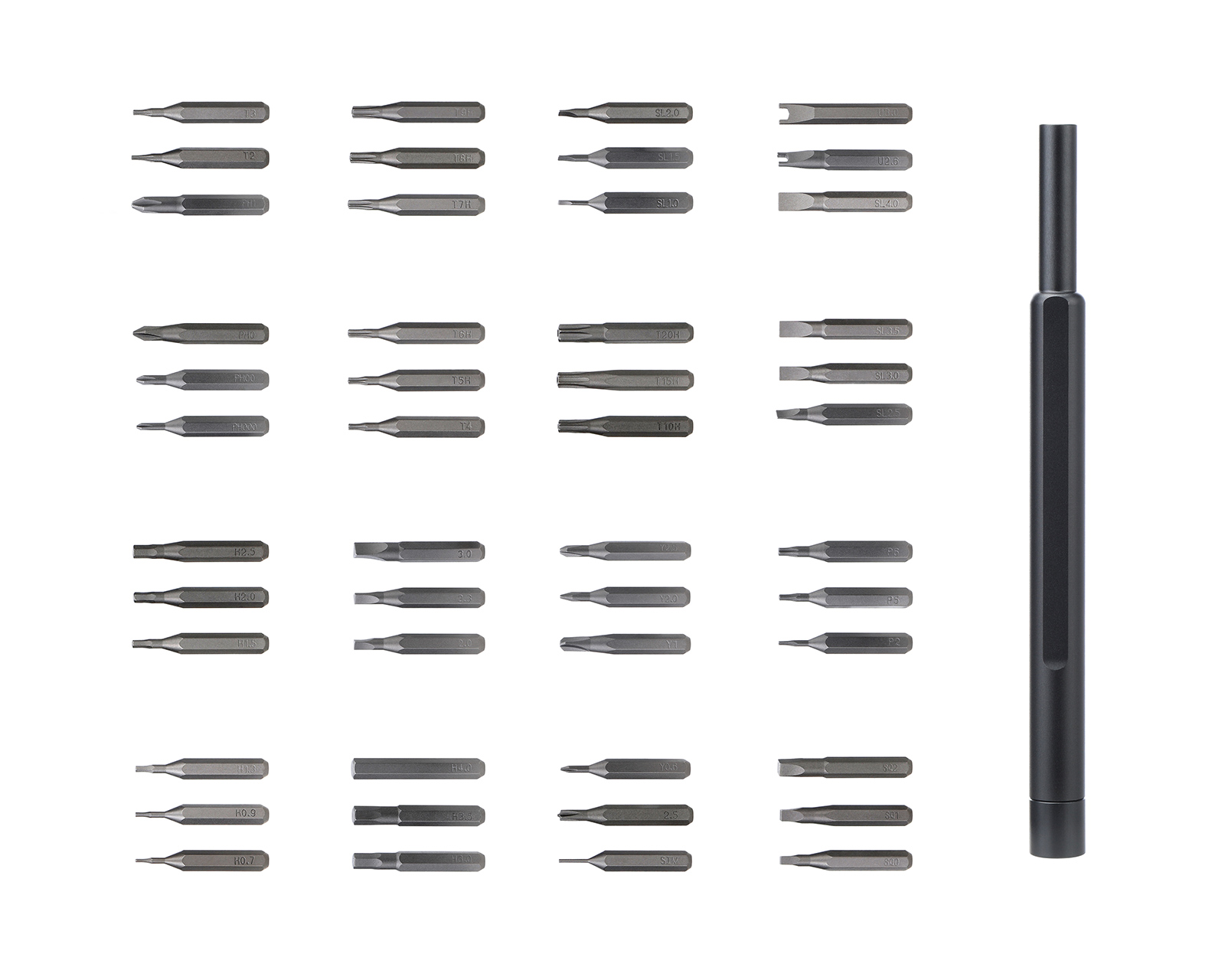 Skruetrækker sæt fra MaxMount, designet til nemt at håndtere reparationer af en række forskellige enheder såsom smartphones, laptops, spillekonsoller og meget mere. Sættet indeholder hele 48 forskellige magnetiske bits, herunder Philips, Torx og hex, hvilket giver brugeren et bredt udvalg til både enklere og mere komplekse reparationer. Med et håndtag af høj kvalitet i aluminium er dette værktøj både lovende i holdbarhed og ergonomisk design.Dette præcisions skruetrækkersæt er bygget med S2 værktøjsstål, som giver en hårdhed på op til 60 HRC, hvilket resulterer i exceptionel holdbarhed og modstandsdygtighed over for rust. Håndtaget har en anodiseret overflade og et særligt skridsikkert greb, hvilket gør det komfortabelt at bruge i længere tid. Den magnetiske design letter bit-skift og gør det let at holde orden på de forskellige bits, hvilket sikrer en glidende brugeroplevelse. Den kompakte størrelse gør desuden, at det er let at tage med, uanset hvor du befinder dig.