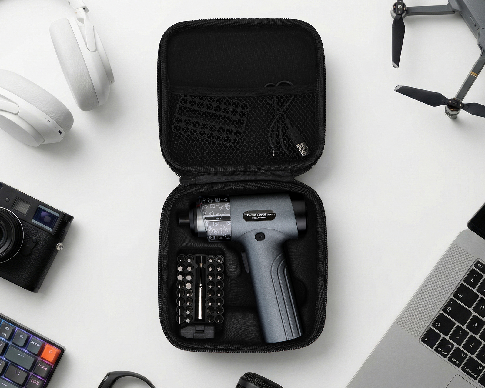 Trådløs præcisionsskruetrækker fra MaxMount, designet til at lette skruetrækning i forskellige situationer. Den er udstyret med et stærkt 3.7V, 2500mAh batteri, der leverer et imponerende drejningsmoment på 5Nm, hvilket gør den ideel til både hjemmebrug og mere omfattende projekter. Med 30 forskellige bits i standard 1/4-tommers størrelse og bygget af holdbart S2-stål, kombinerer denne skruetrækker holdbarhed med høj ydeevne.Skruetrækkeren tilbyder ergonomisk design for nem håndtering, hvilket gør, at den kan bruges med én hånd. Den hurtigtladende USB til Type-C-kabel sikrer lang batteritid og hurtig genopretning af energi. Specielle funktioner såsom den indbyggede LED-lampe hjælper dig med at arbejde i svag belysning, mens batteriindikatoren muliggør realtids overvågning af kapaciteten. Klarer hastigheder på op til 200 omdrejninger/minut, hvilket gør den tilpasningsdygtig til forskellige materialer og behov.