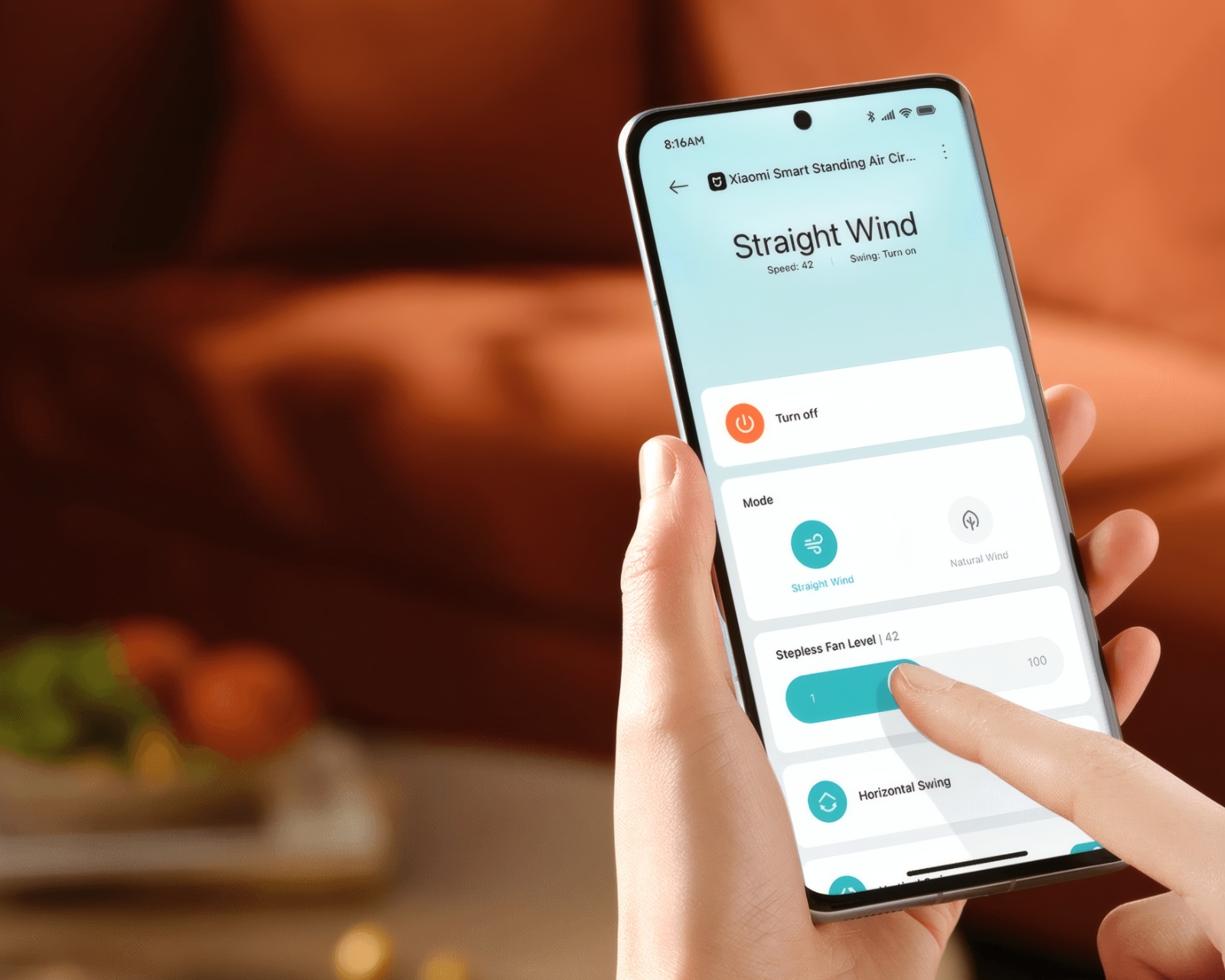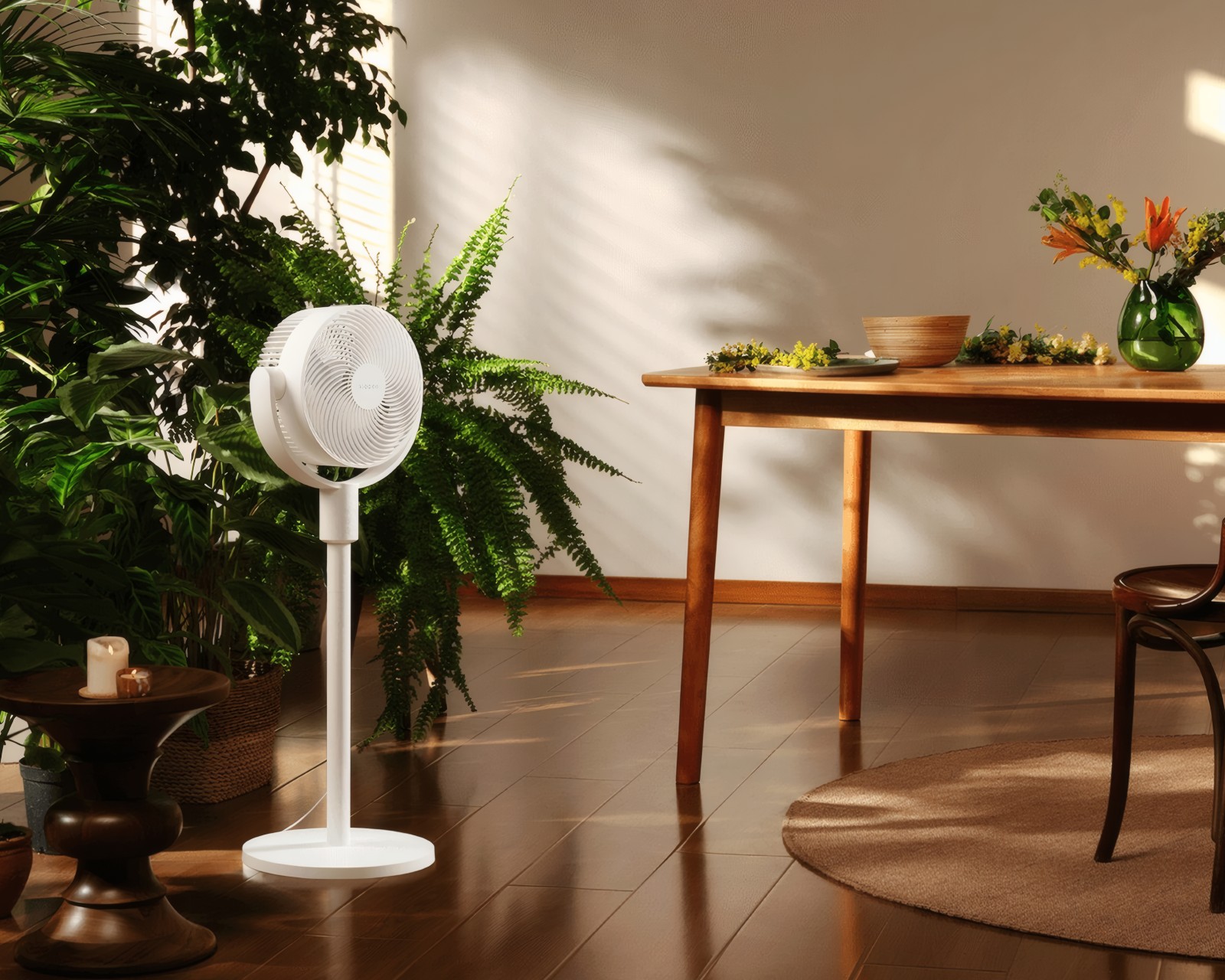 Smart Stående Luftcirkulationsblæser er en blæser fra Xiaomi, som tilbyder kraftfuld luftcirkulation og effektiv temperaturregulering. Hovedfunktionerne inkluderer en stærk luftstrømskapacitet på 1440m³/t og en ventilationsrækkevidde på op til 13 meter. Blæseren er designet til brug både på bordet og som gulvstående enhed. Denne blæser er konstrueret med et slankt design, hvilket gør den nem at placere i forskellige miljøer.Den har en svingbredde på 120 grader vandret og 100 grader lodret, hvilket sikrer, at luften når alle hjørner af rummet. Med en DC-invertermotor muliggøres en stabil og energieffektiv drift, der kun kræver 1.3kWh for at holde rummet køligt hele sommeren. Dens lave lydniveau på 27.9 dB(A) ved laveste hastighed gør den også brugbar om natten uden at forstyrre søvnen.